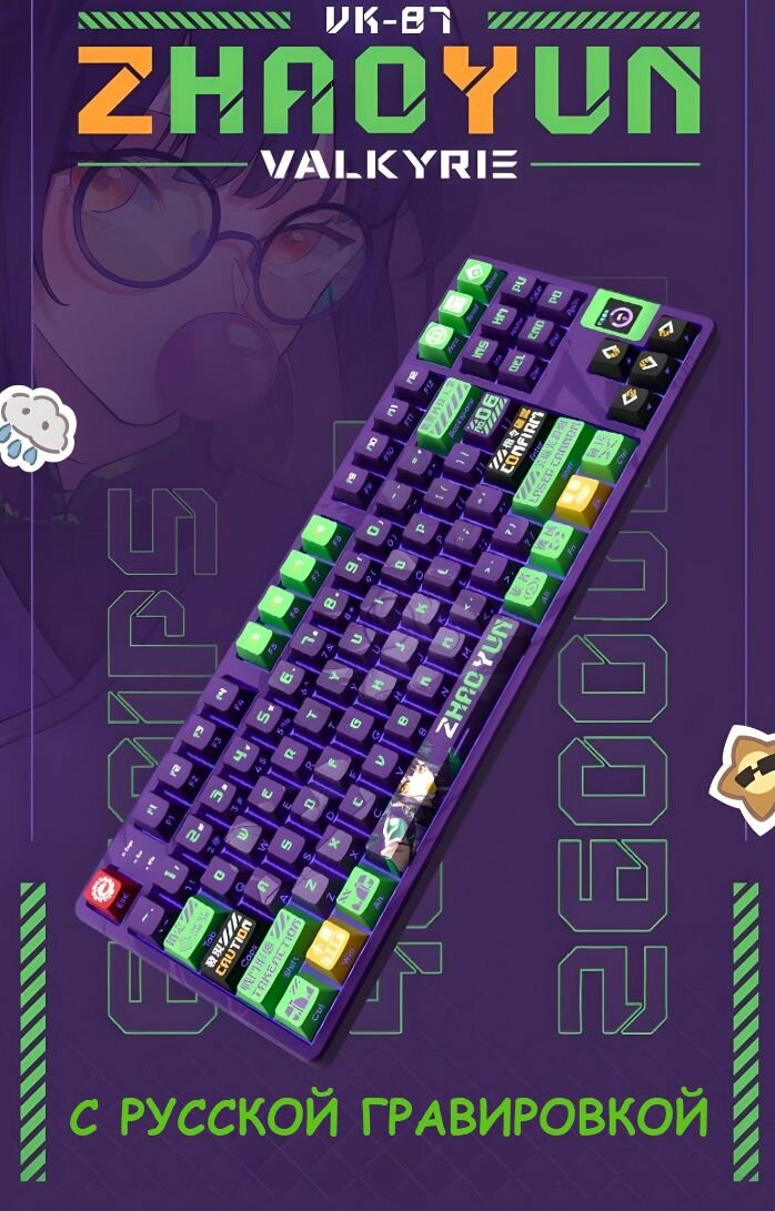 Механическая игровая беспроводная клавиатура VALKYRIE VK87-ZhaoYun. Фиолетовая. Русская раскладка.