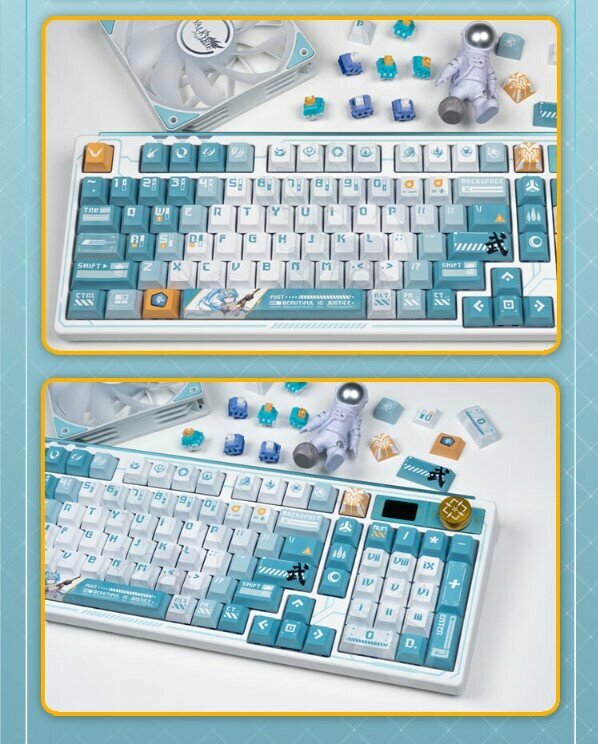 Механическая игровая беспроводная клавиатура VALKYRIE VK99-Mist. Бело-голубая. Английская раскладка/Русская раскладка