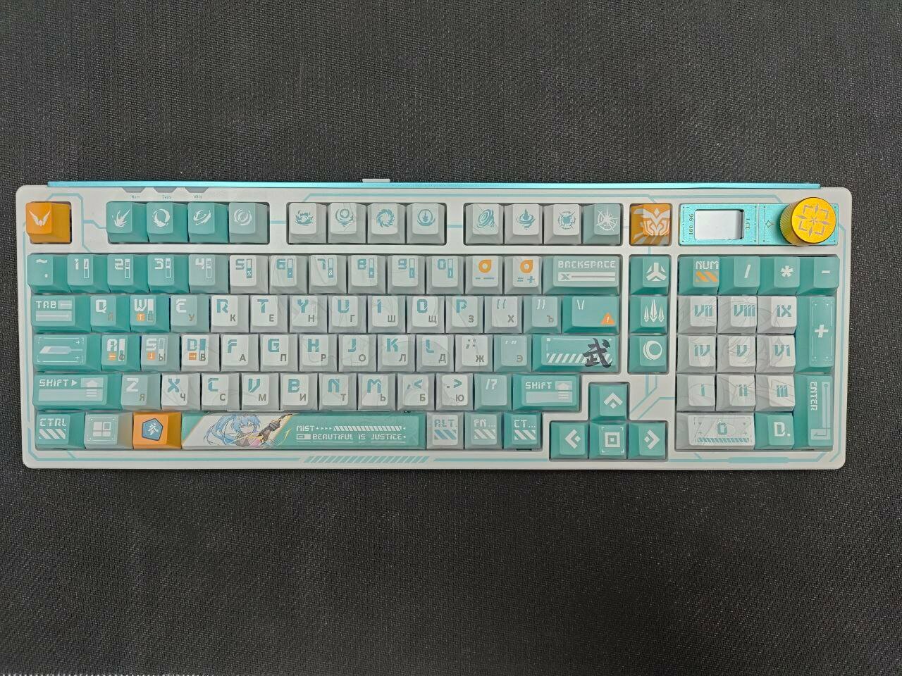 Тайпинг приятный. Свечи смазаны, пробел (и не только он) стабилизирован, прокладки есть. Сама конструкция клавиатуры упругая, отдача взаимная. По сравнению с моей прошлой на красных Kailh – это небо и земля. Мне этого достаточно с головой. Но, к слову, уверен, что существуют свечи ещё тише) Лед дисплейчик – прикольно. Установил свою гифочку, смотрится интересно. Чтобы это сделать, клавиатуру нужно подключить по USB. Размер гифки должен быть 128?128 пикселей. |