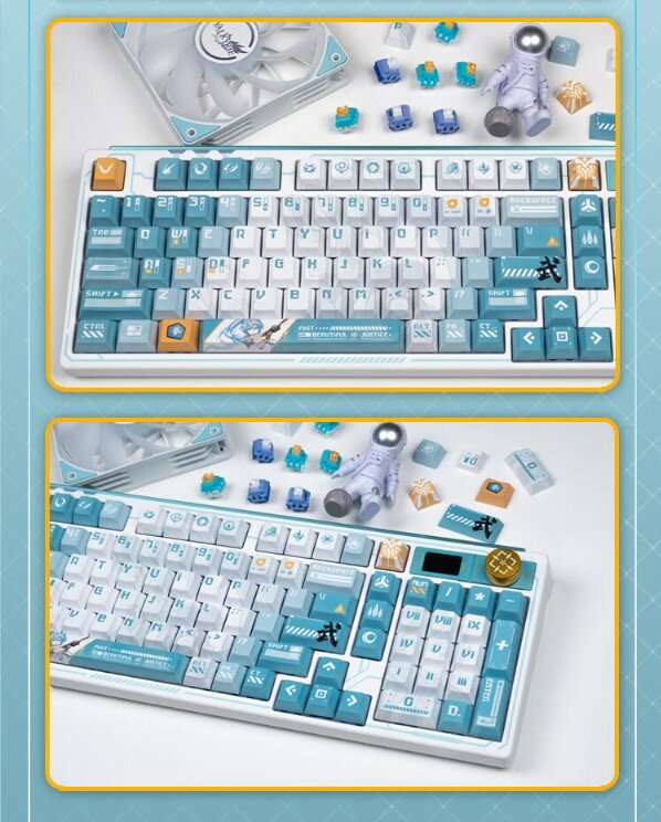 Механическая игровая беспроводная клавиатура VALKYRIE VK99-Mist. Бело-голубая. Английская раскладка