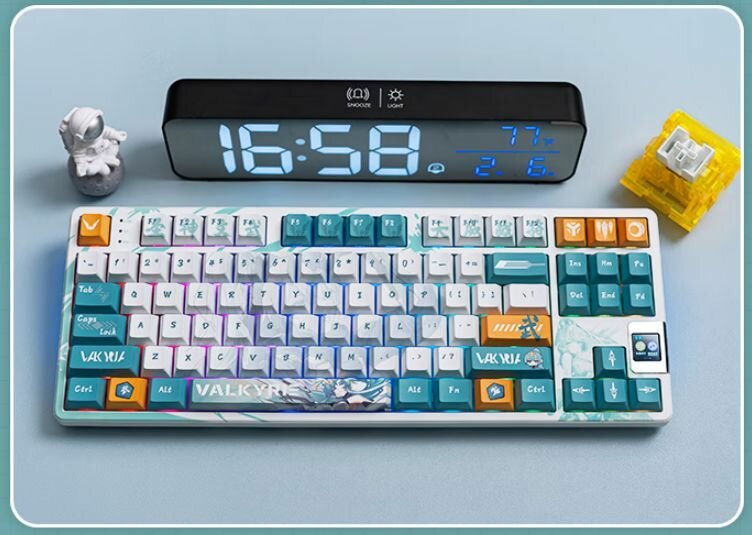 Механическая игровая беспроводная клавиатура VALKYRIE VK99-Mist. Бело-голубая. Русская раскладка.