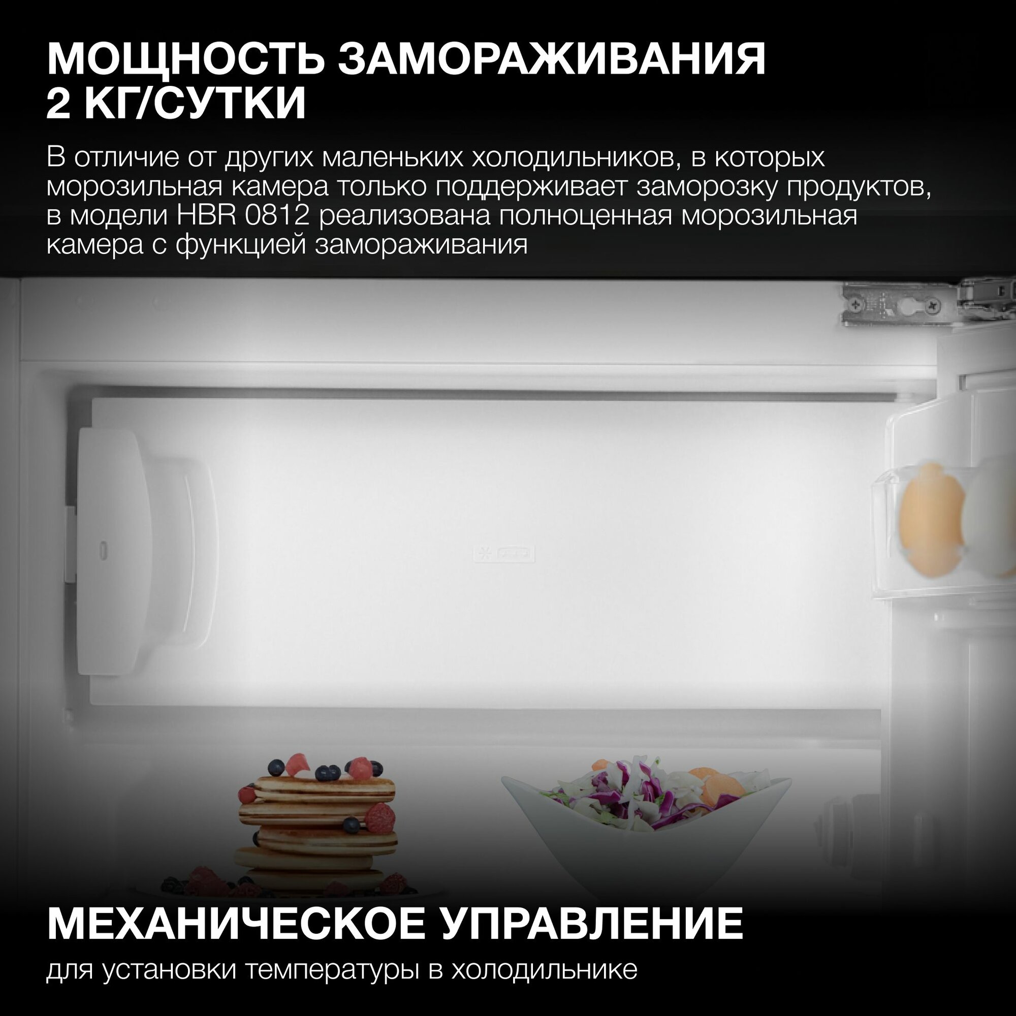 Холодильник однокамерный с морозилкой встраиваемый Hyundai HBR 0812 белый, маленький интересное: