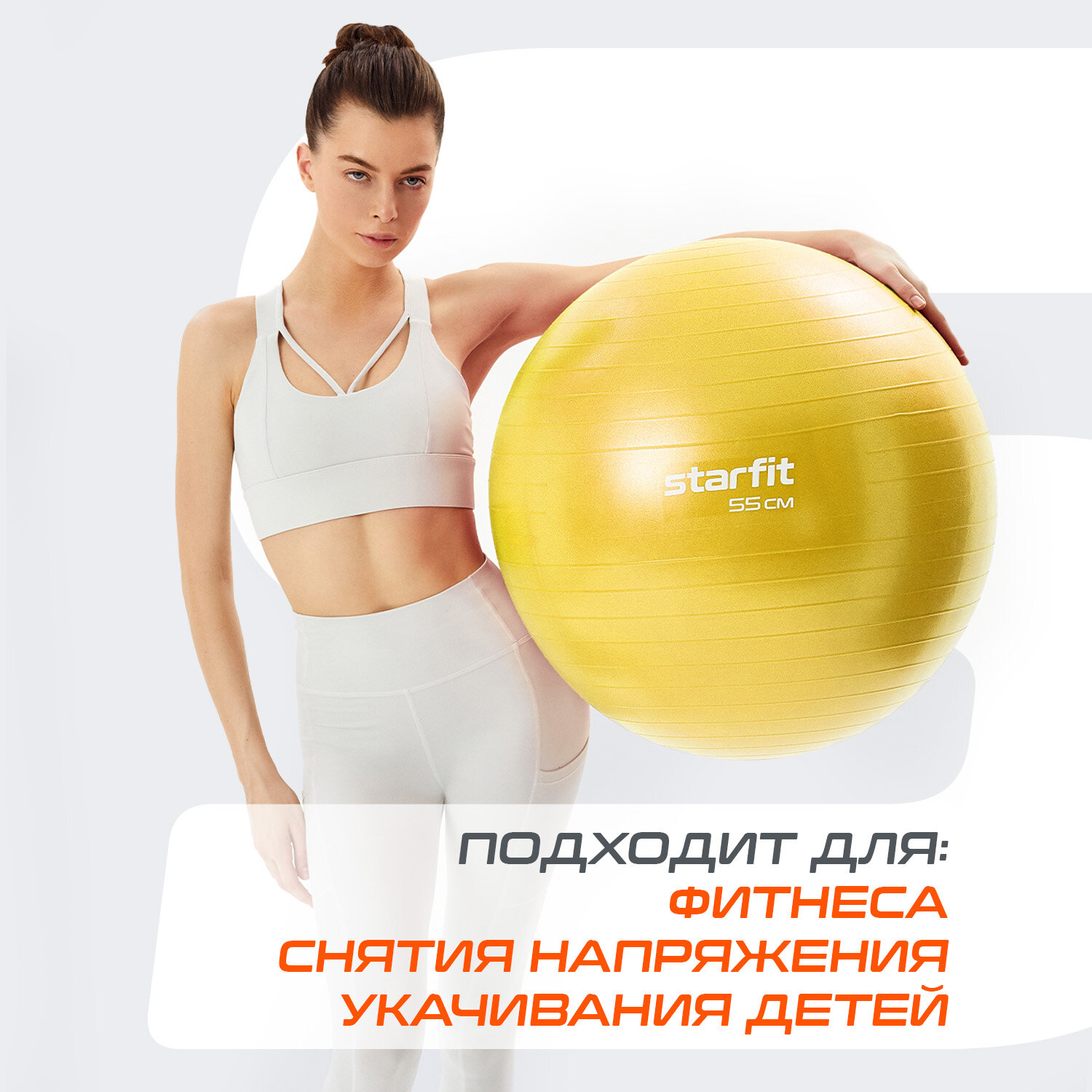 Купить Фитбол Starfit GB-111 с насосом и антивзрывом, 55см, 900г, желтый