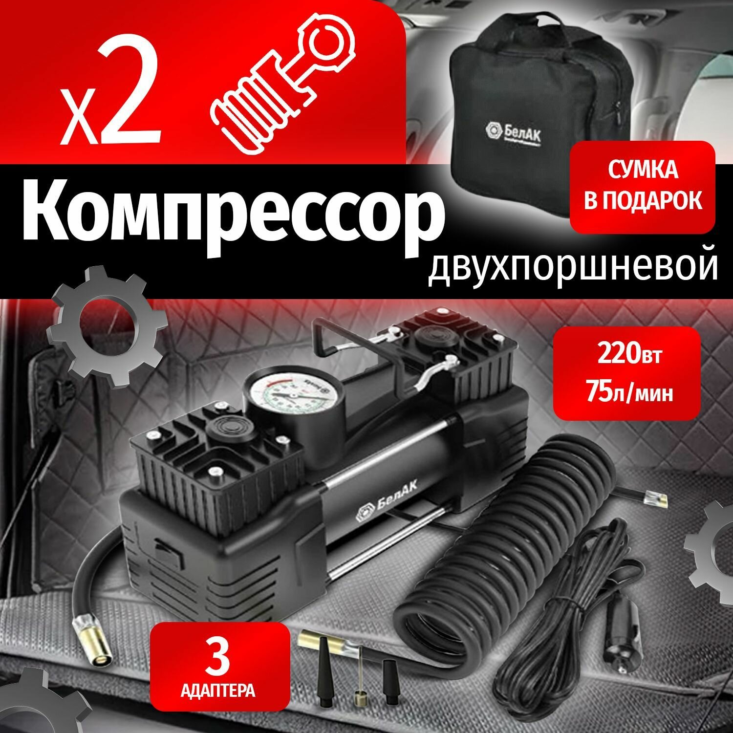 Компрессор автомобильный двухпоршневой / Насос автомобильный электрический двухцилиндровый 12v 75л/мин / Мистраль-75 БАК.99161 БелАК