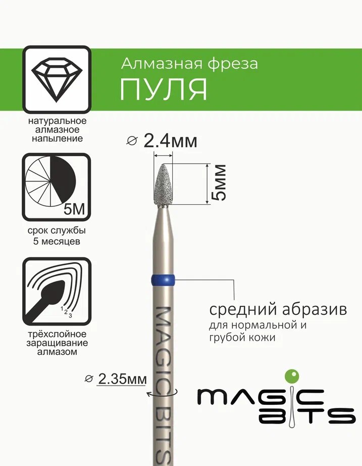 Magic Bits Алмазная пуля 2.4 мм с натуральным напылением среднего абразива интересное: