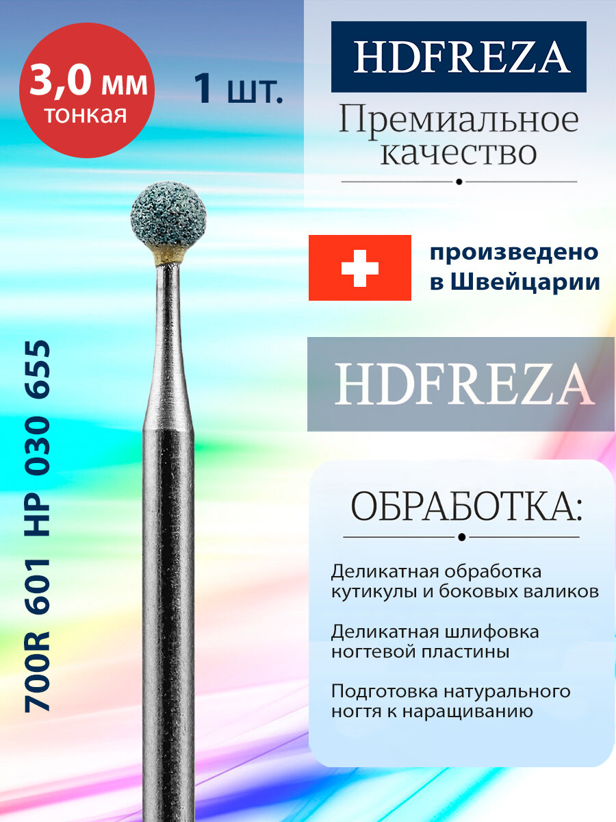 Ниже Вы можете прочитать отзывы на Фреза корундовая для маникюра и педикюра безопасная HDFREZA шлифовщик 700R 601 HP 030 655 Тонкий шар, ознакомится с подробными характеристиками, посмотреть интересные обзоры и фотографии на Фреза корундовая для маникюра и педикюра безопасная HDFREZA шлифовщик 700R 601 HP 030 655 Тонкий шар.