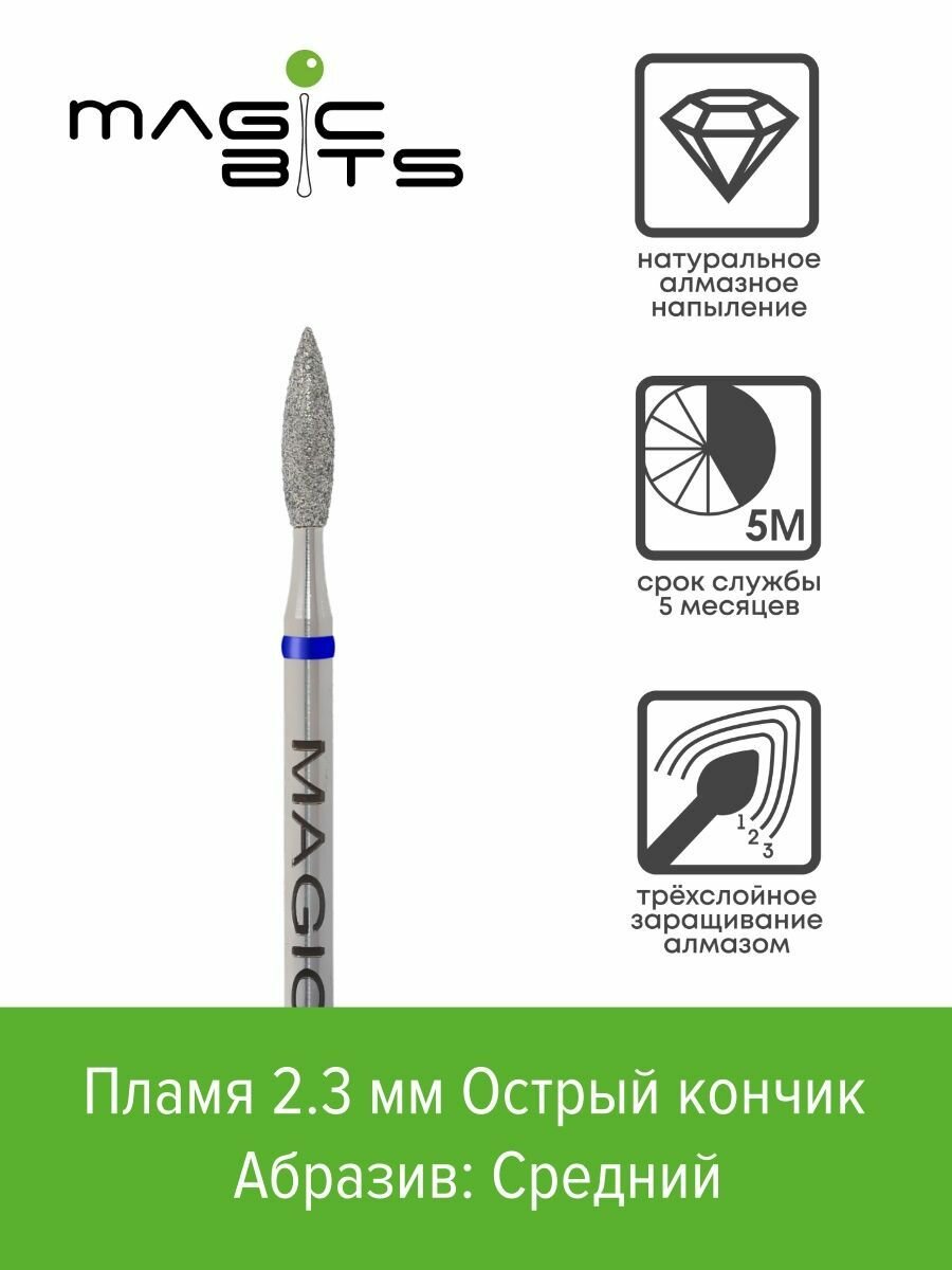 Magic Bits Фреза Алмазное пламя 2.3 мм острый кончик с натуральным напылением средне-мягкого абразива