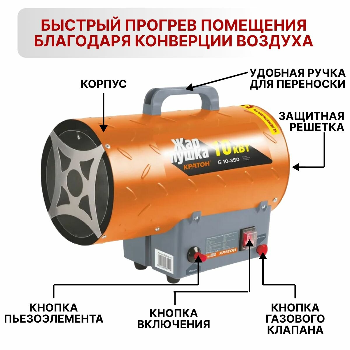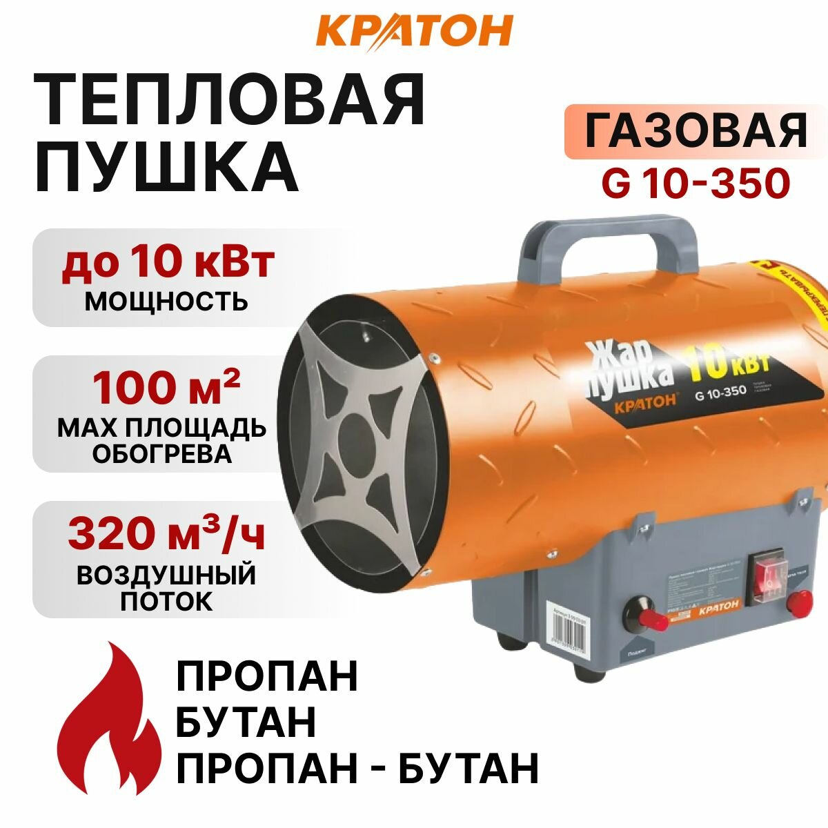 Пушка тепловая газовая Кратон Жар-пушка G 10-350 (мощность: 10 кВт , объем отапливаемого помещения: 100 м³) интересное: