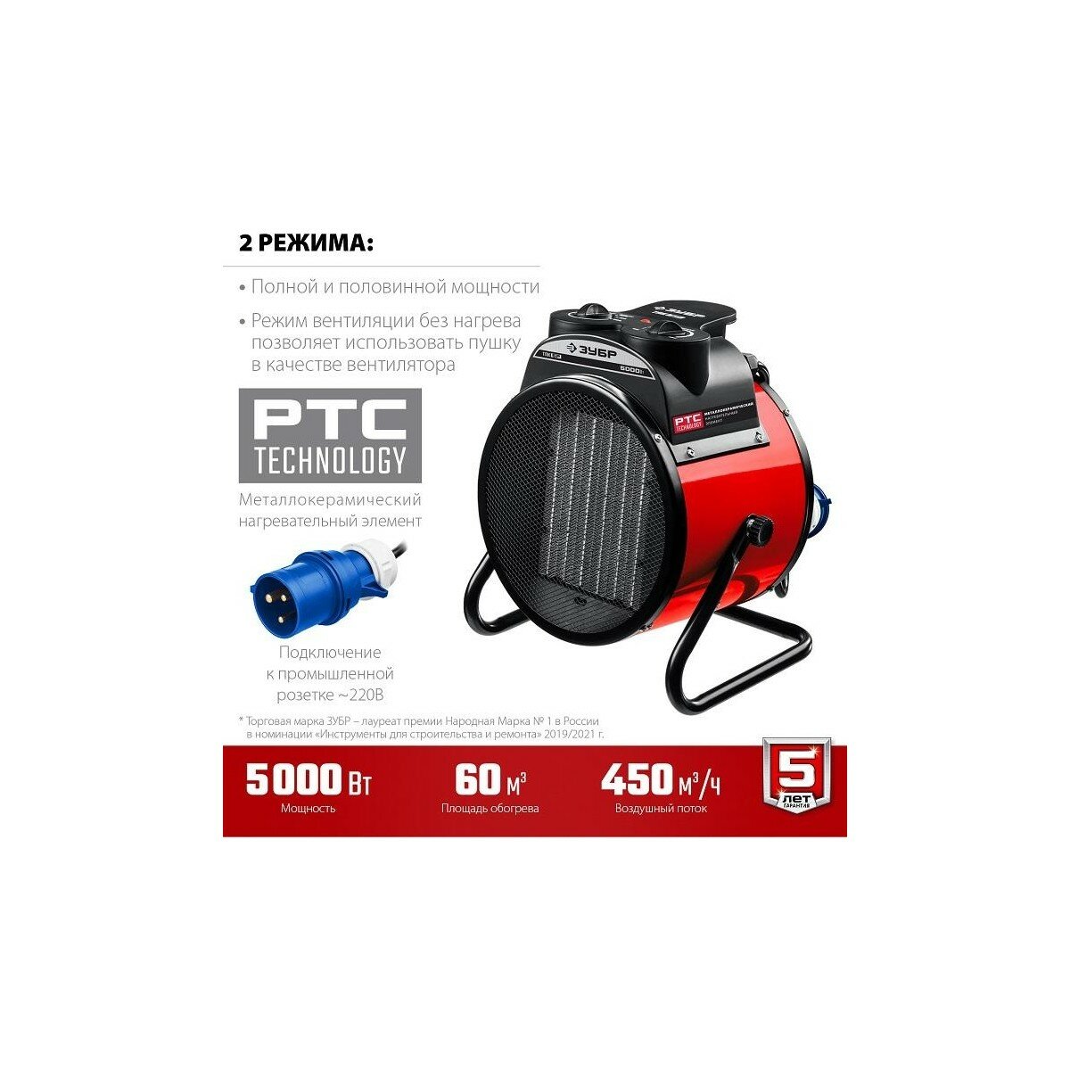 ЗУБР 5 кВт, электрическая тепловая пушка (ТПК-5Р)