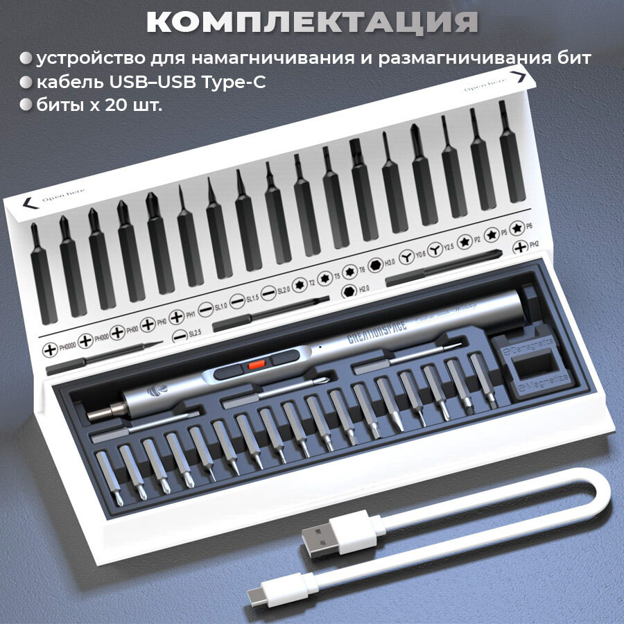 Отвертка для точных работ аккумуляторная электрическая Creation Space для телефона, ноутбука, очков, электроники, 20 бит интересное: