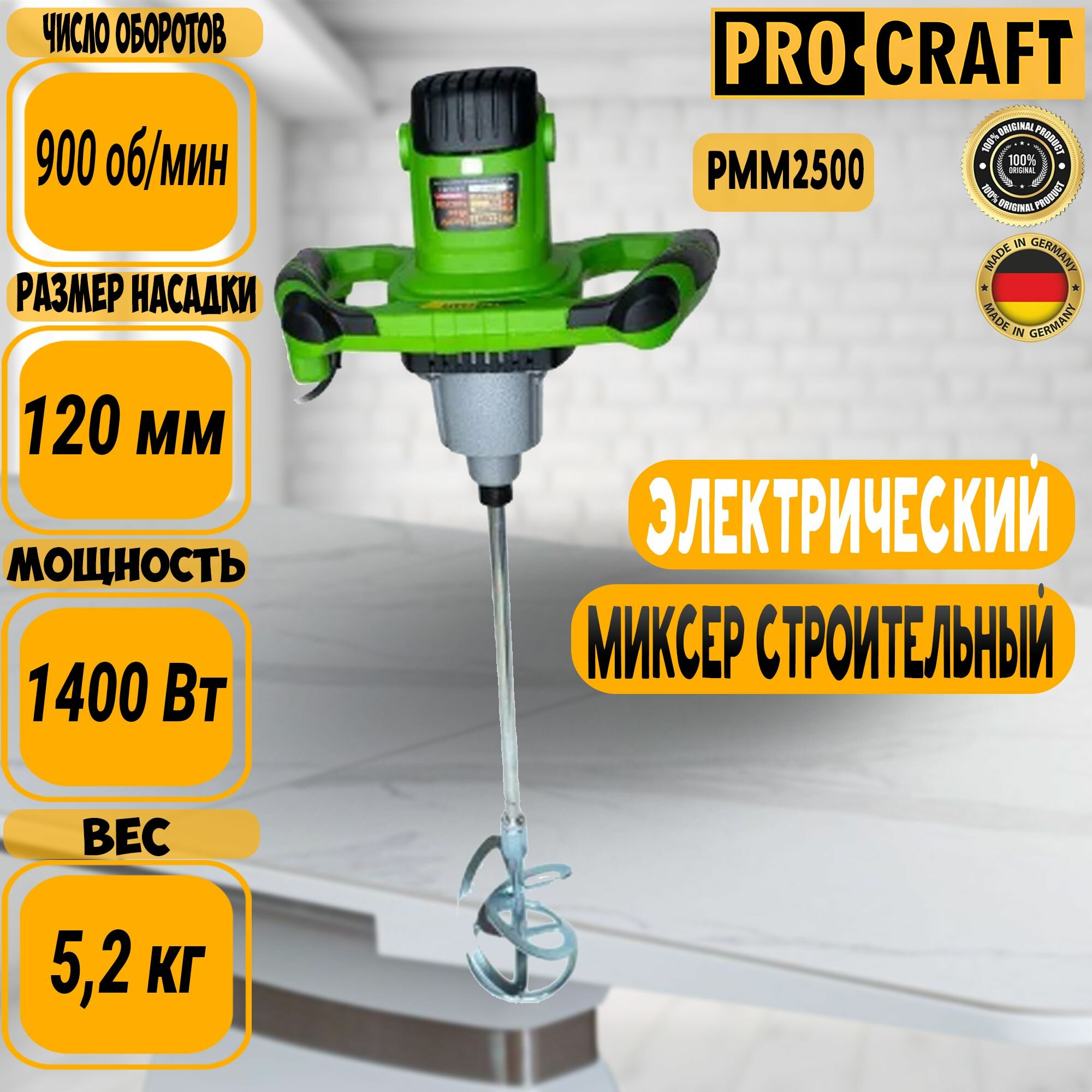 Миксер строительный электрический строительный Procraft PMM-2500, 900об/мин, 1400Вт