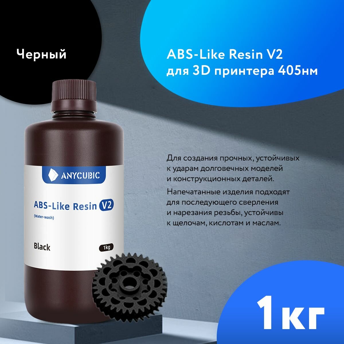 Купить Фотополимерная смола Anycubic ABS-Like Resin V2 Чёрный, 1 л