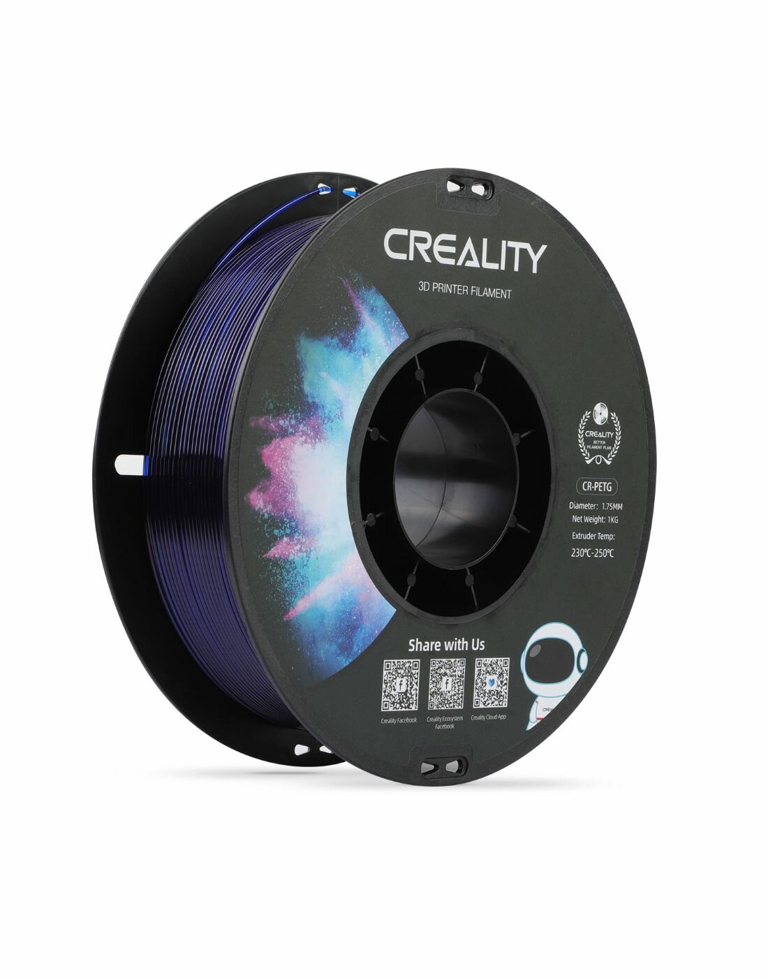 Купить Катушка CR-PETG plastics пластика Creality 1.75 мм 1кг, Прозрачный синий