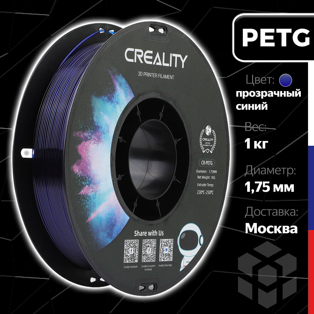 Нить для 3D-принтера Creality PETG, 1 кг, диаметр 1.75 мм, прозрачный синий