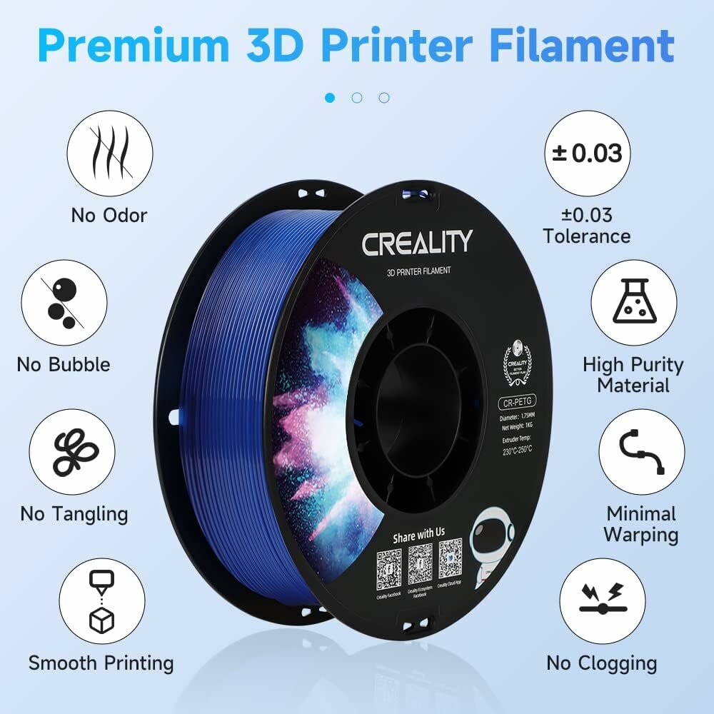 Ниже Вы можете прочитать отзывы на Катушка CR-PETG plastics пластика Creality 1.75 мм 1кг, Прозрачный синий, ознакомится с подробными характеристиками, посмотреть интересные обзоры и фотографии на Катушка CR-PETG plastics пластика Creality 1.75 мм 1кг, Прозрачный синий.