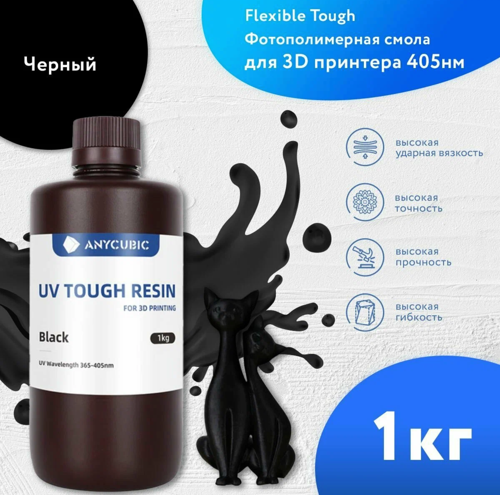 Фотополимерная смола для 3d принтера Anycubic Tough 2.0 UV Flexible Resin 365-405 nm Черный, 1 кг.