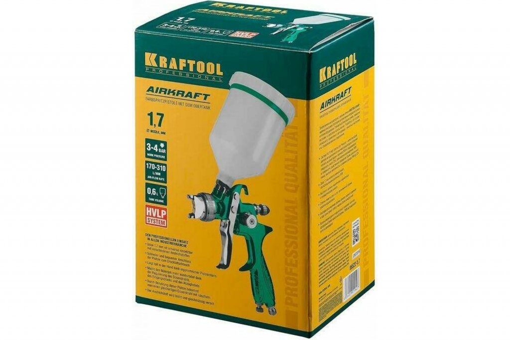 KRAFTOOL AirFlat, LVLP, 1.7 мм, пневматический краскопульт с верхним бачком (06524-1.7)