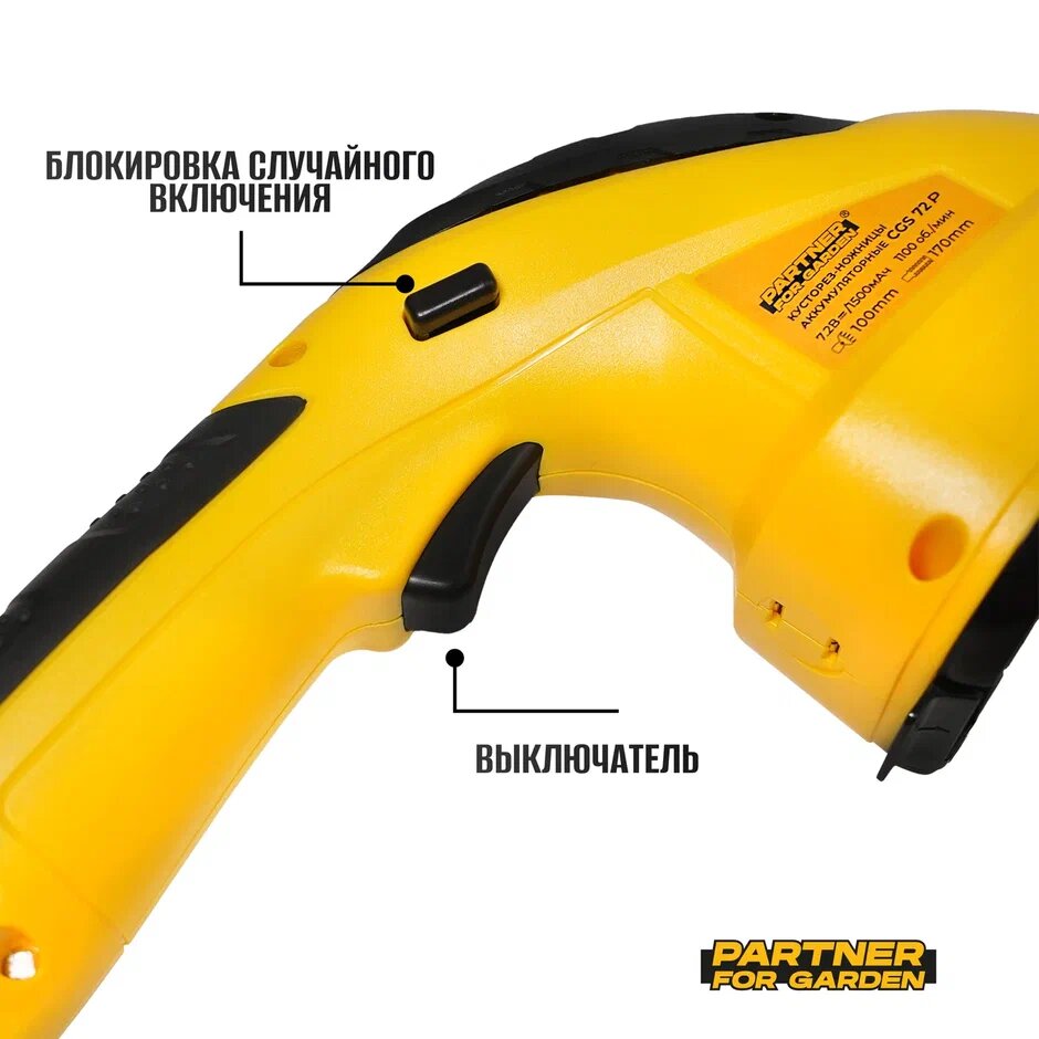 Кусторез аккумуляторный / Секатор аккумуляторный / Секатор аккумуляторный садовый Partner for Garden CGS-72P ( 7,2В, 1,5Ач, 1100 Об/мин, ширина лезвия 100мм, длина лезвия 170мм )