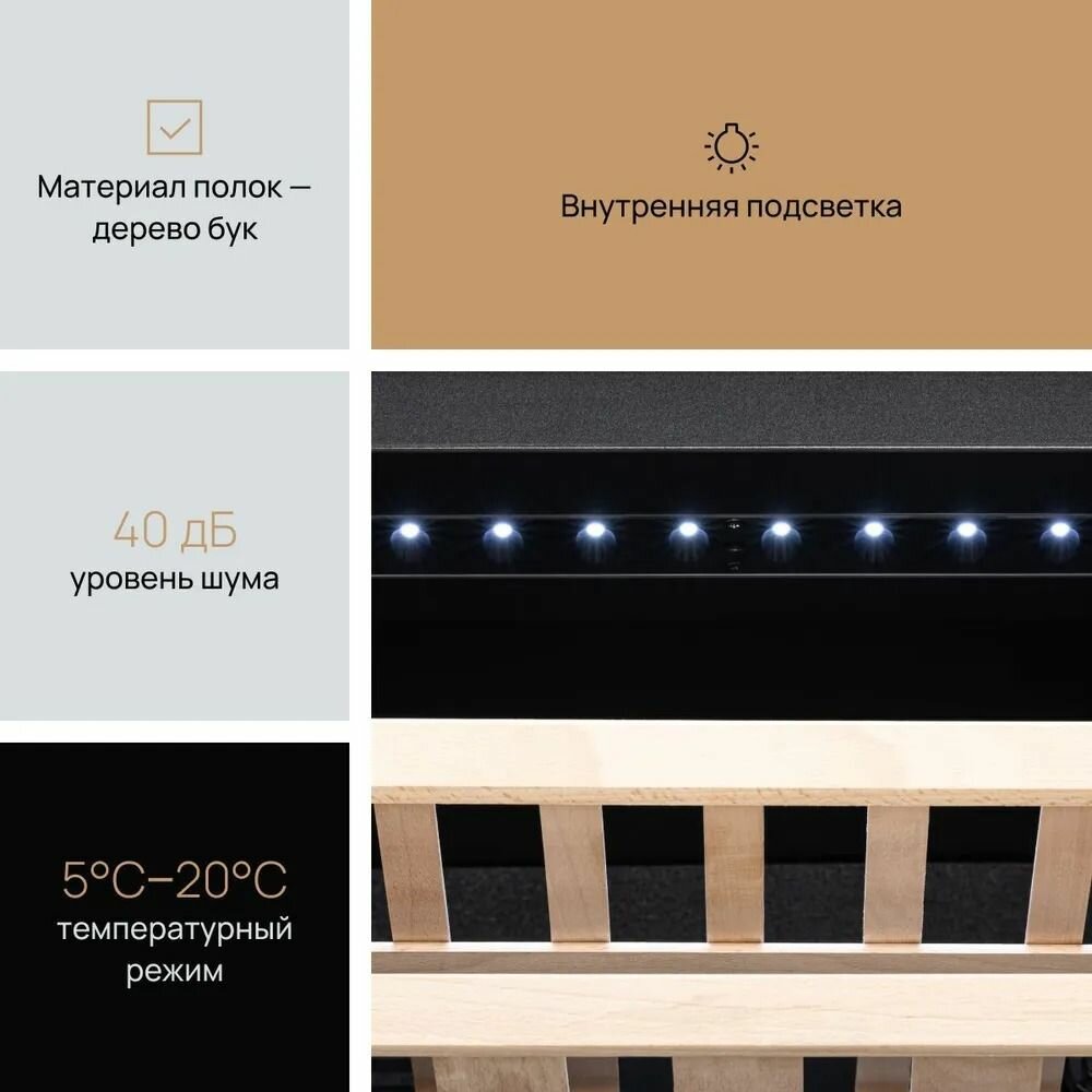 | Дополнительная информация | Возможность расположить бутылку с широким дном; Внутренняя подсветка; Сенсорное управление |