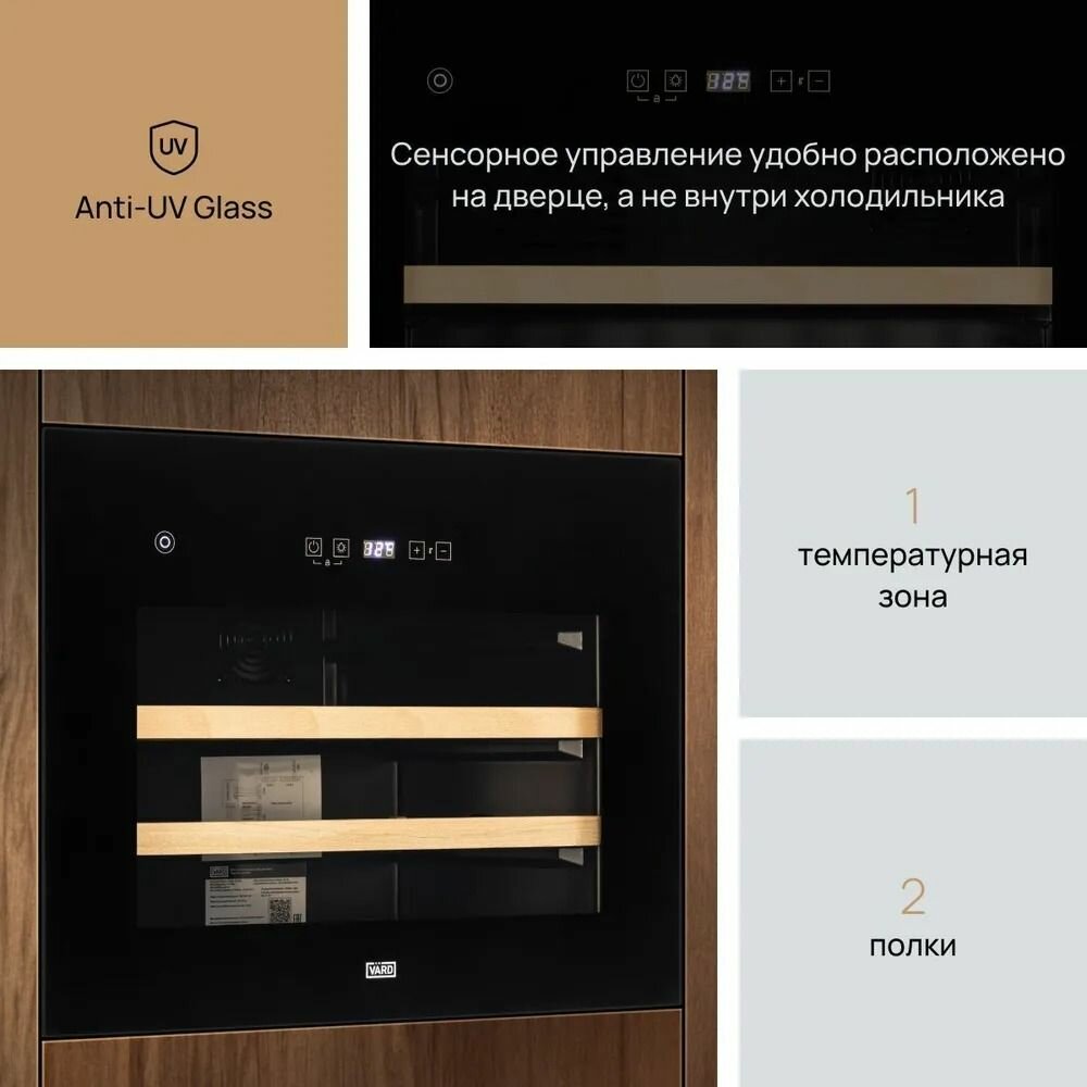 Винный шкаф VARD WCI4SS встраиваемый, на 28 бутылок, сенсорное управление, двойное остекление с защитой от УФ-лучей, подходит для хранения игристых вин интересное: