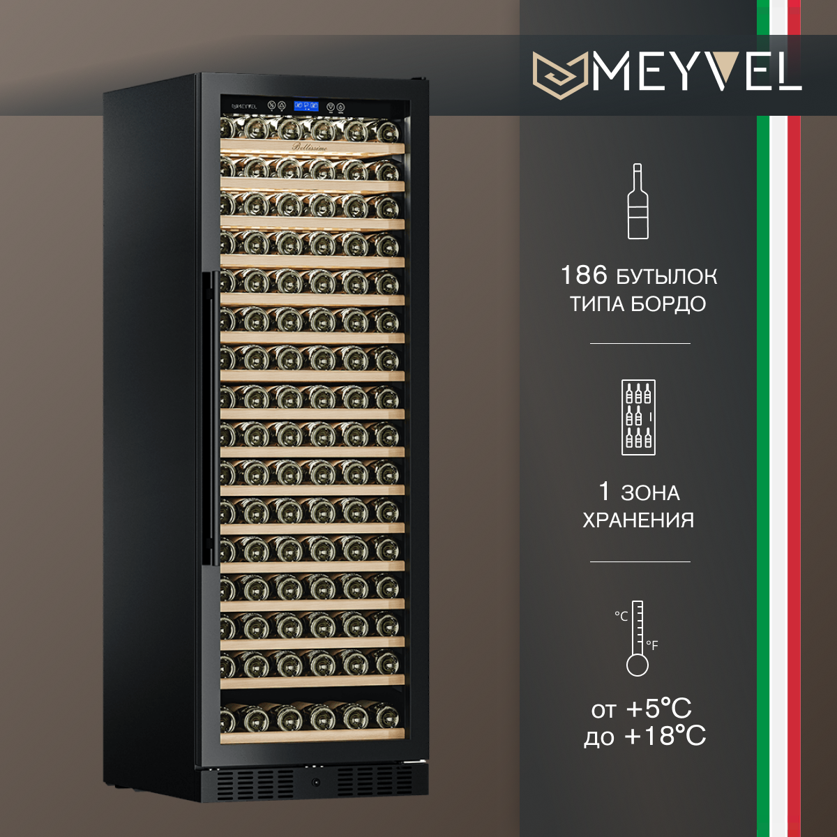 | Емкость винного шкафа, бут. | 186 |