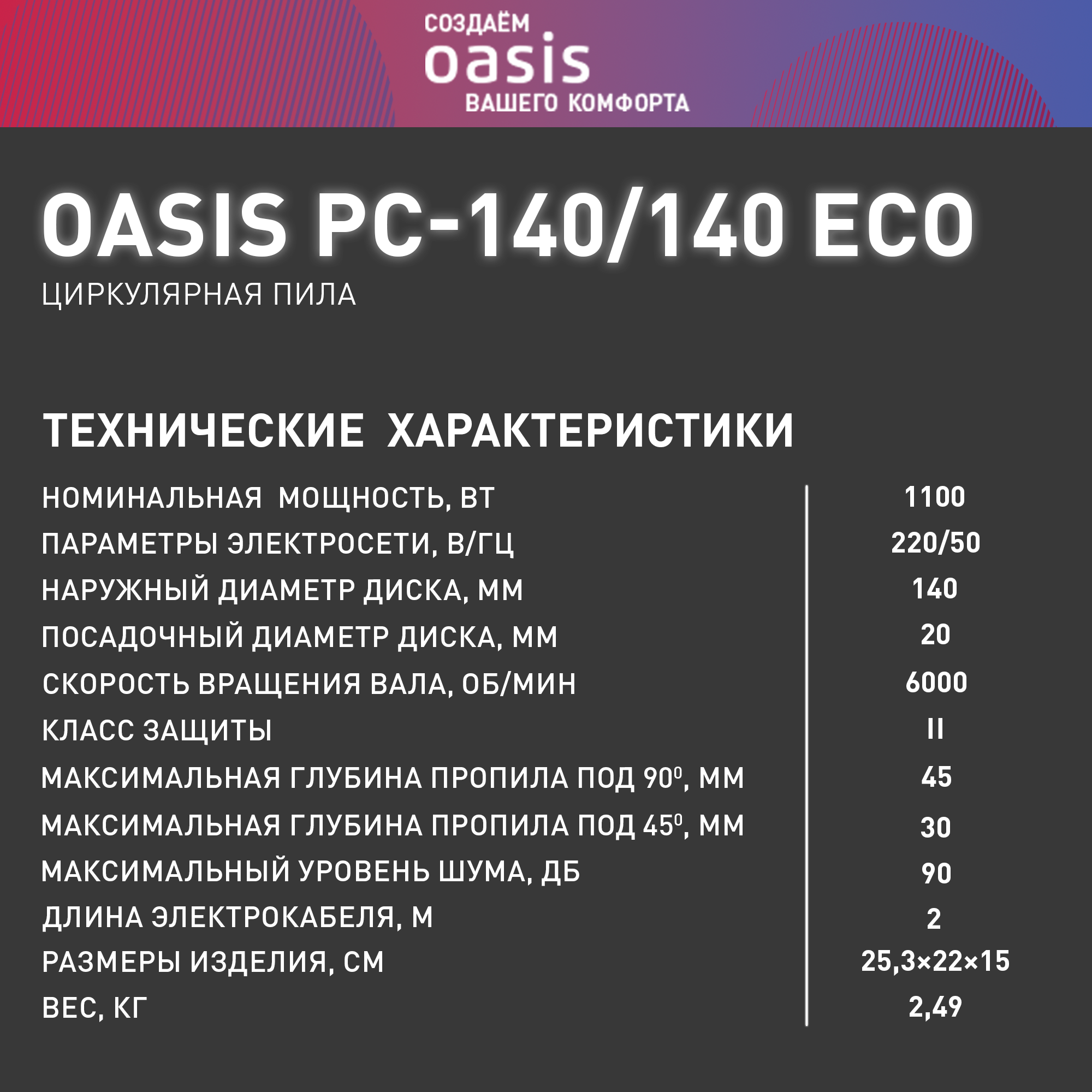 Циркулярная пила дисковая Oasis PC-140/140 ECO, 1100 Вт, 140 мм