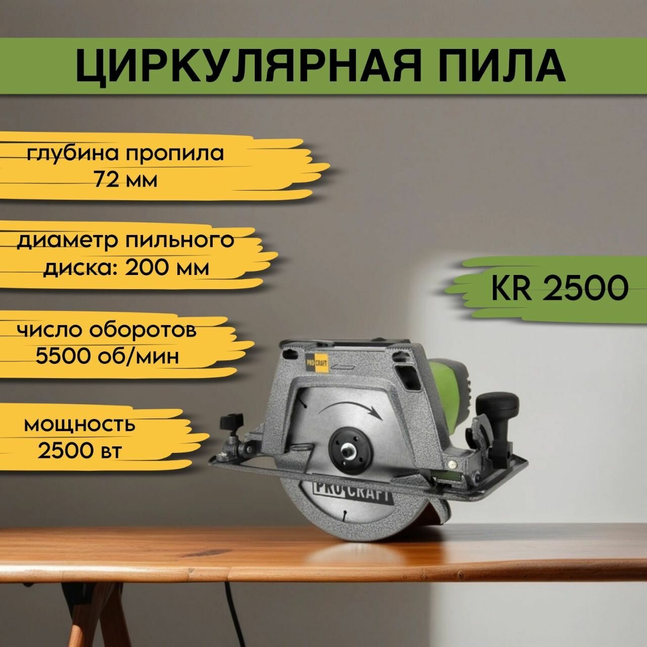 Дисковая пила ProCraft KR2500, 2500 Вт зеленый