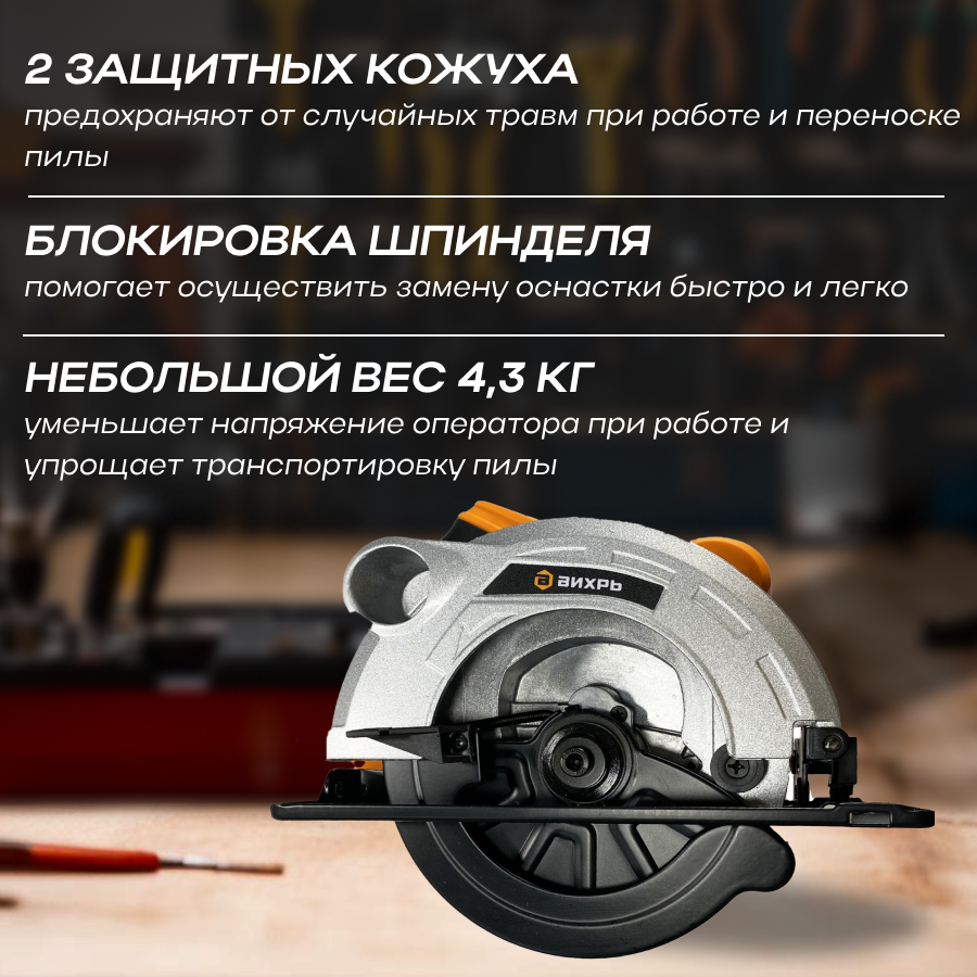 Дисковая пила ВИХРЬ ДП-200СТ, 2000 Вт