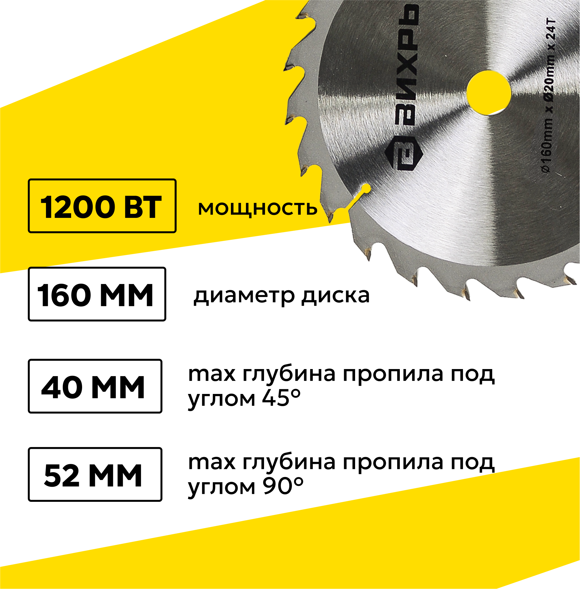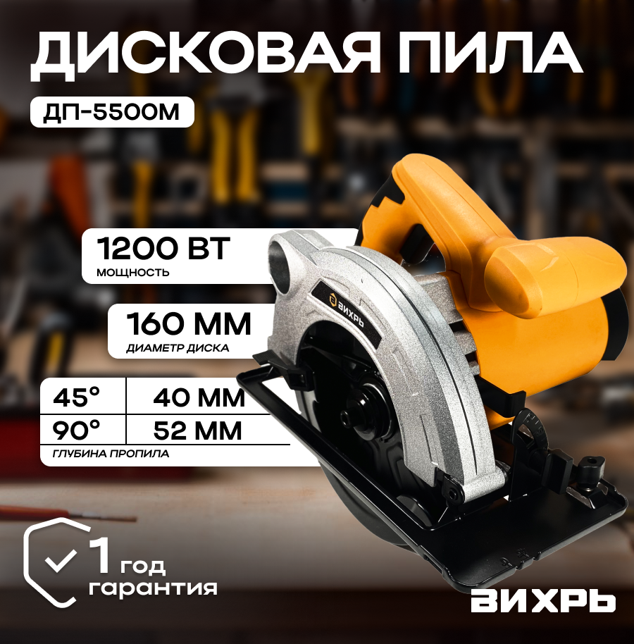 Дисковая циркулярная пила "Вихрь" ДП-5500М, 1200Вт, диск 160мм интересное: