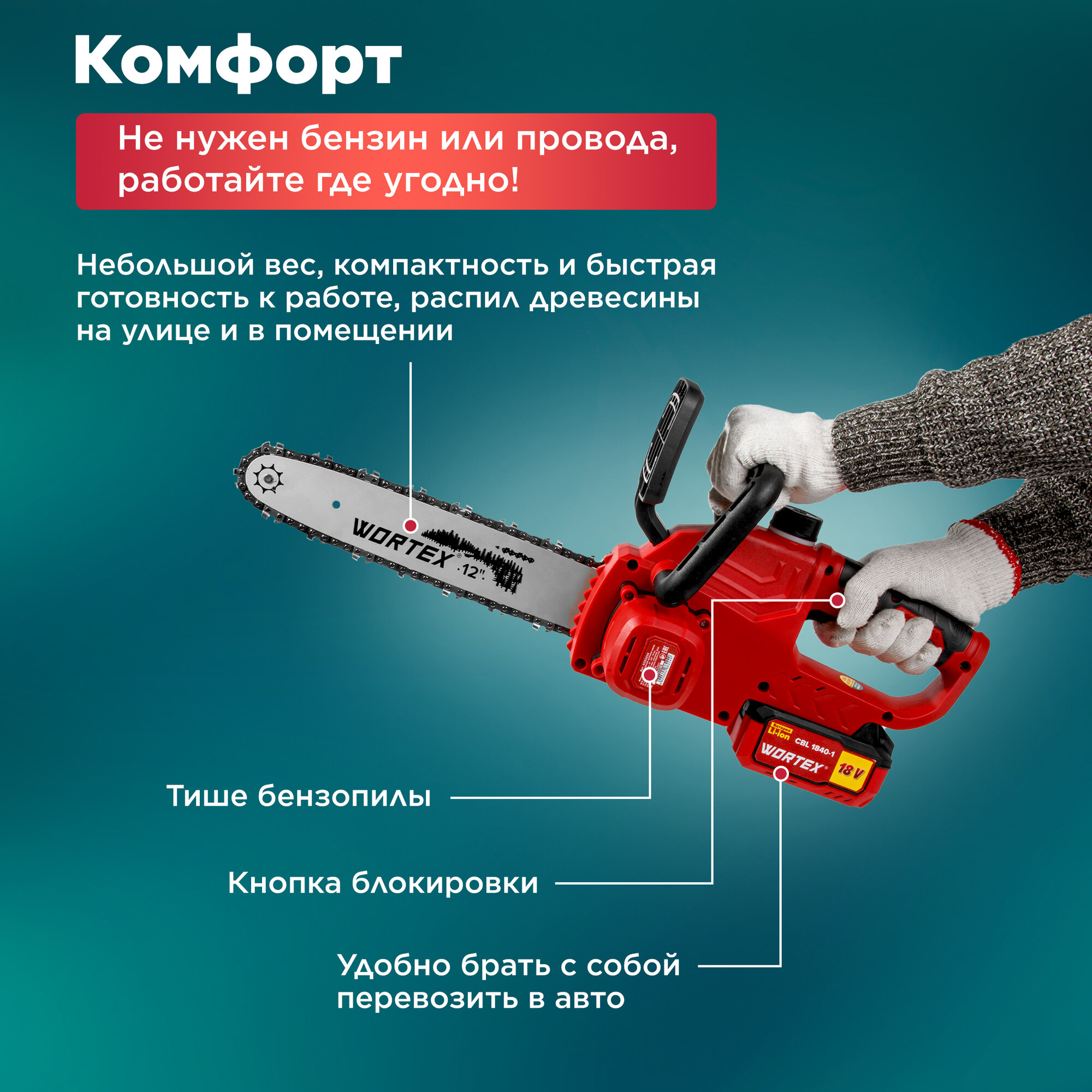 Пила цепная аккумуляторная WORTEX CEC 3018 ALL1 С аккумулятором и зарядным устройством (0333224)