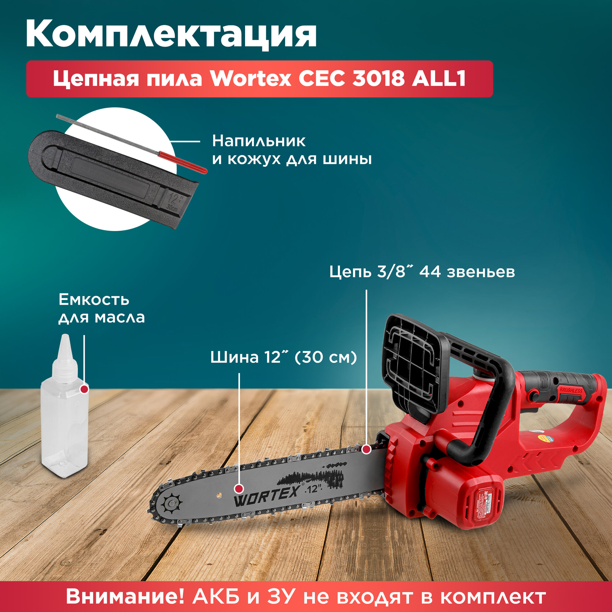 Пила цепная аккумуляторная WORTEX CEC 3018 ALL1 без аккумулятора и зарядного устройства (0333223)