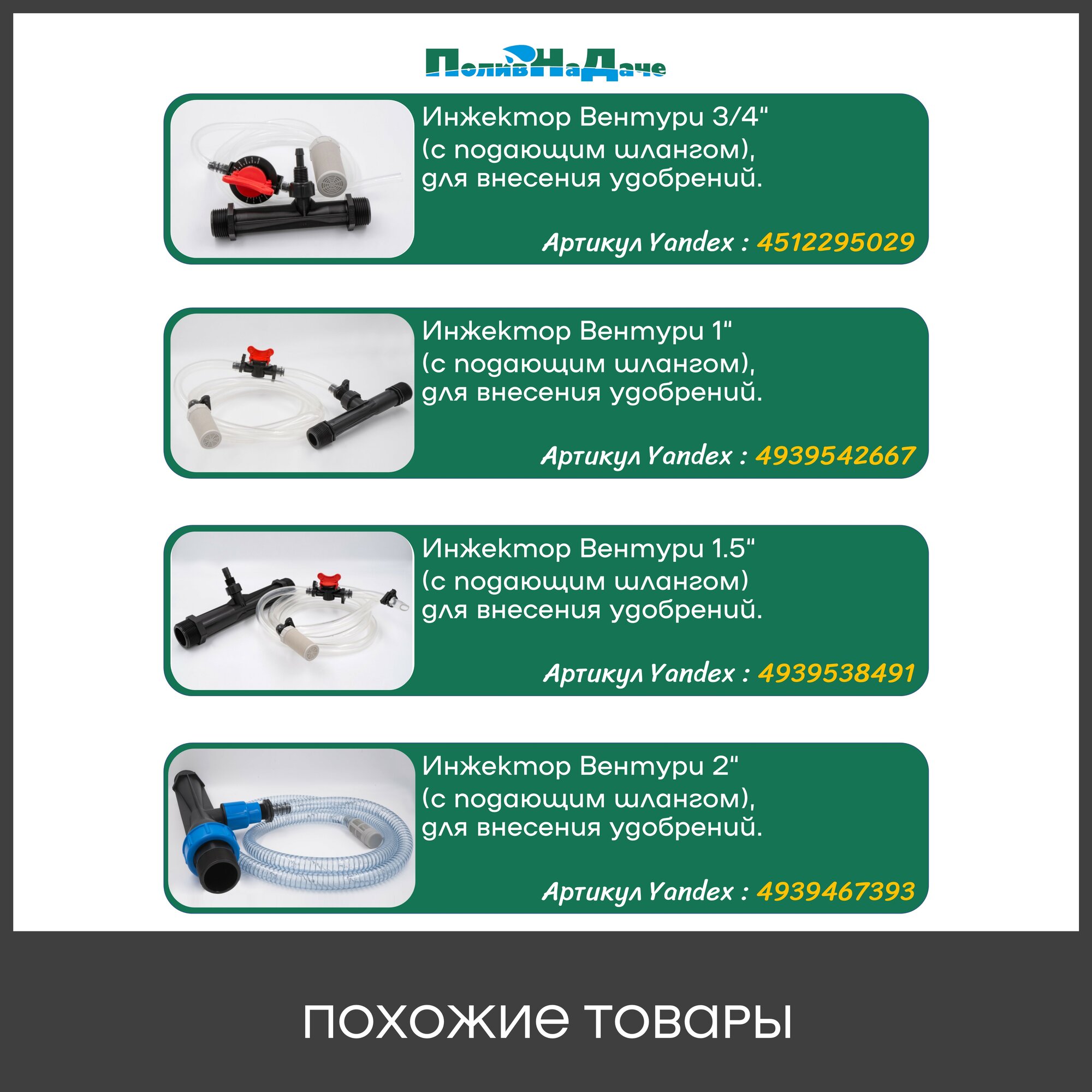 Инжектор Вентури 2" (с подающим шлангом) для внесения удобрений, поток 11.58-20m3/h при 0.7-9.5bar, мощность всасывания 110-1200L/h