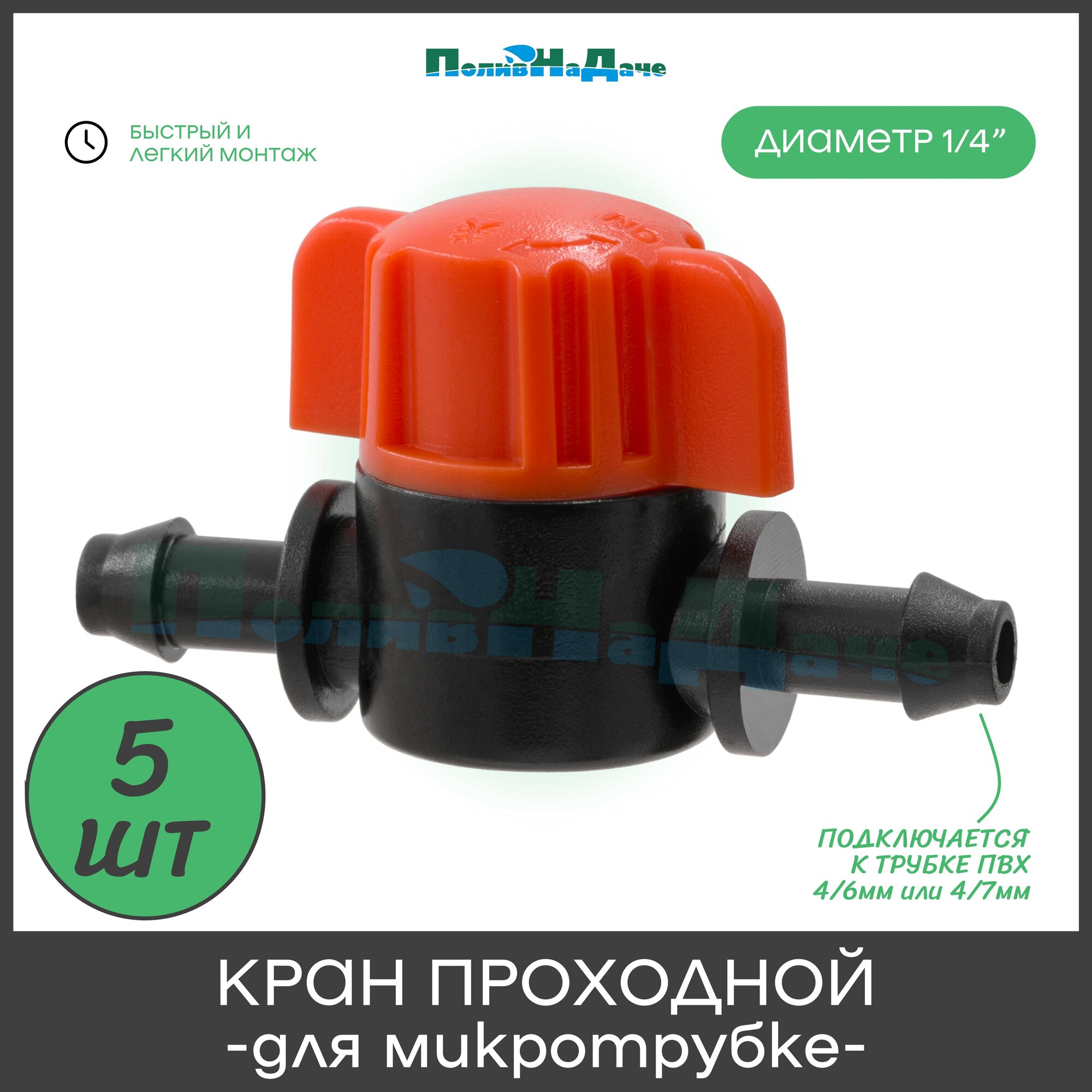 Кран проходной для микротрубки ПВХ 4/6мм или 4/7мм (1/4") - 5 штук интересное:
