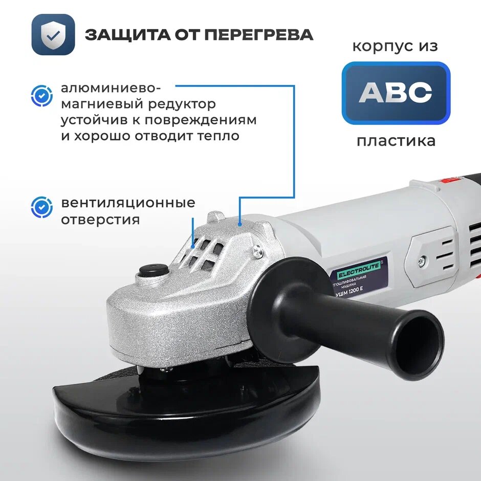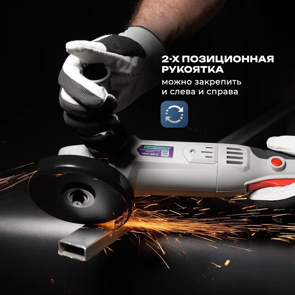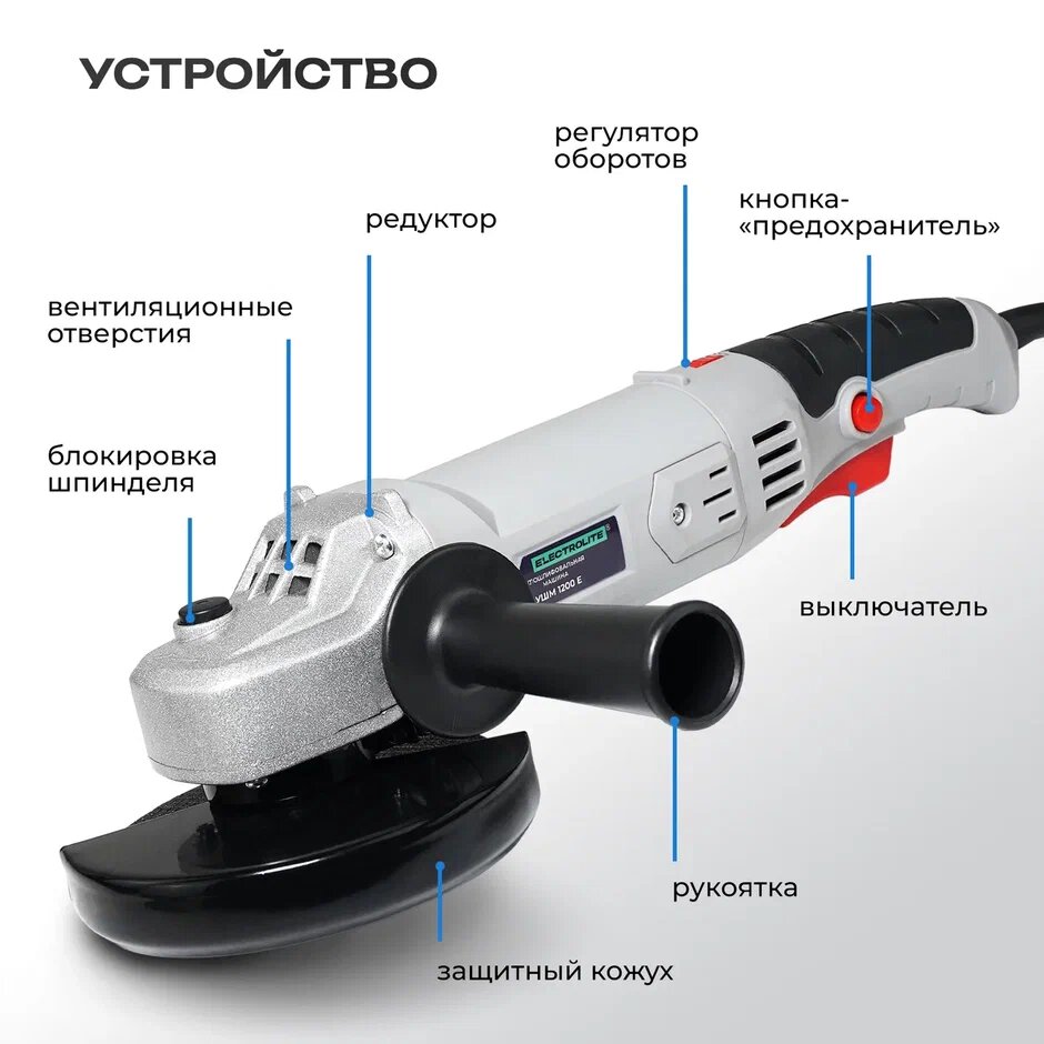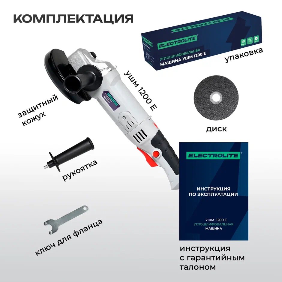 Шлифовальная машина / УШМ / Болгарка отрезная по металлу ELECTROLITE УШМ 1200ЕL ( 1200 Вт, 125 мм, регулировка оборотов, сетевая) шлифмашина угловая