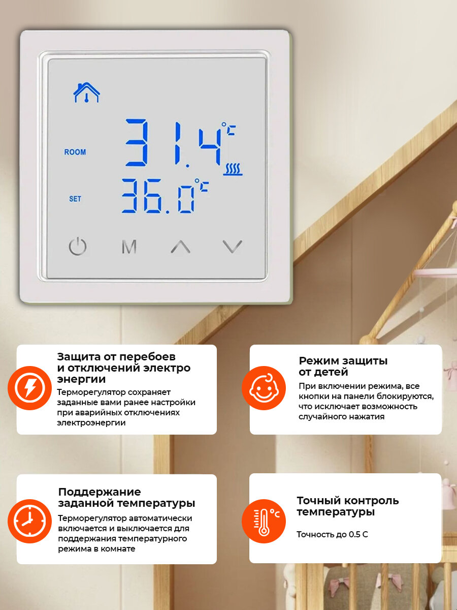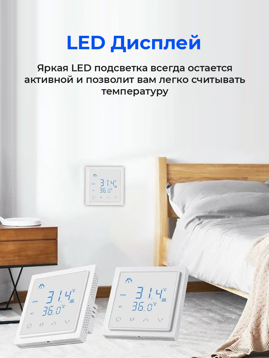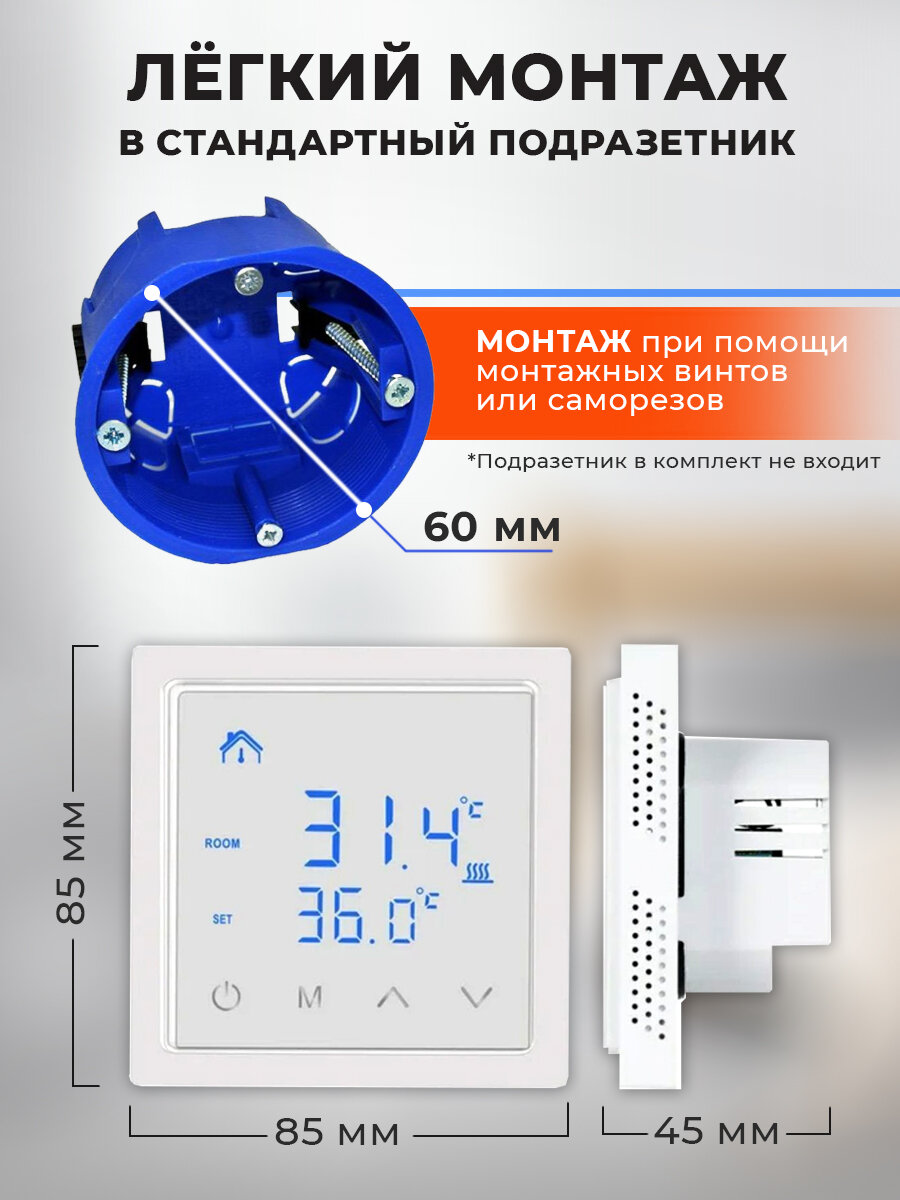 Терморегулятор для теплого пола и конвекторов программируемый сенсорный / регулятор температуры / Термостат