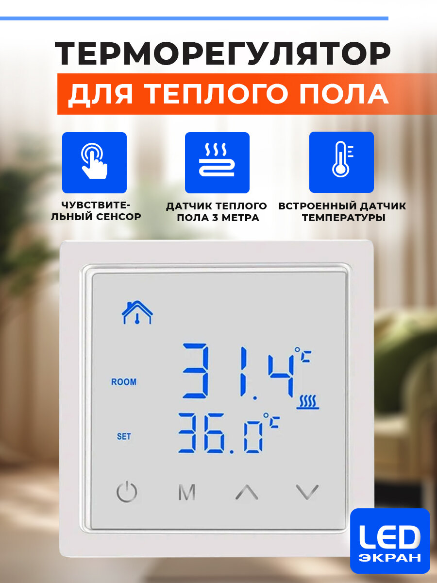 Терморегулятор для теплого пола / термостат для теплого пола / регулятор теплого пола программируемый