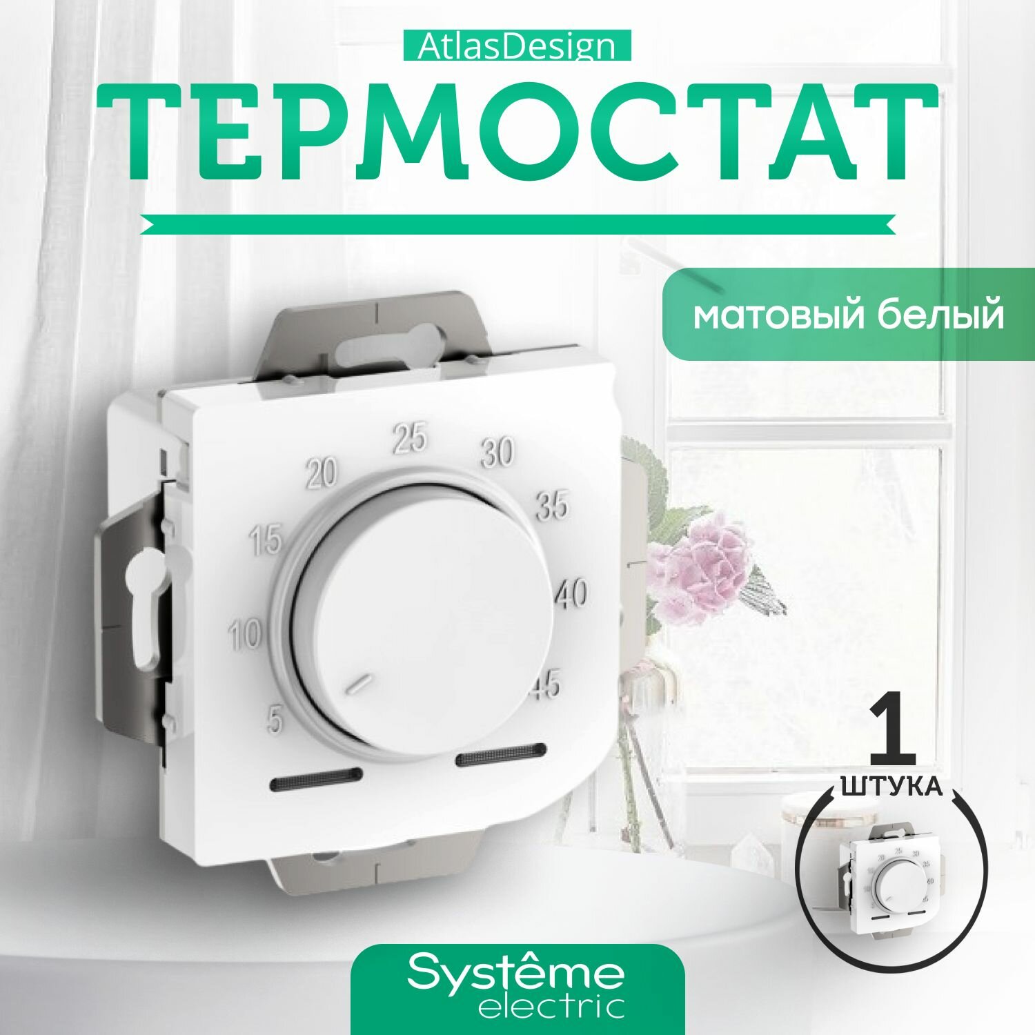 Терморегулятор для тёплого пола Systeme Electric AtlasDesign, белый