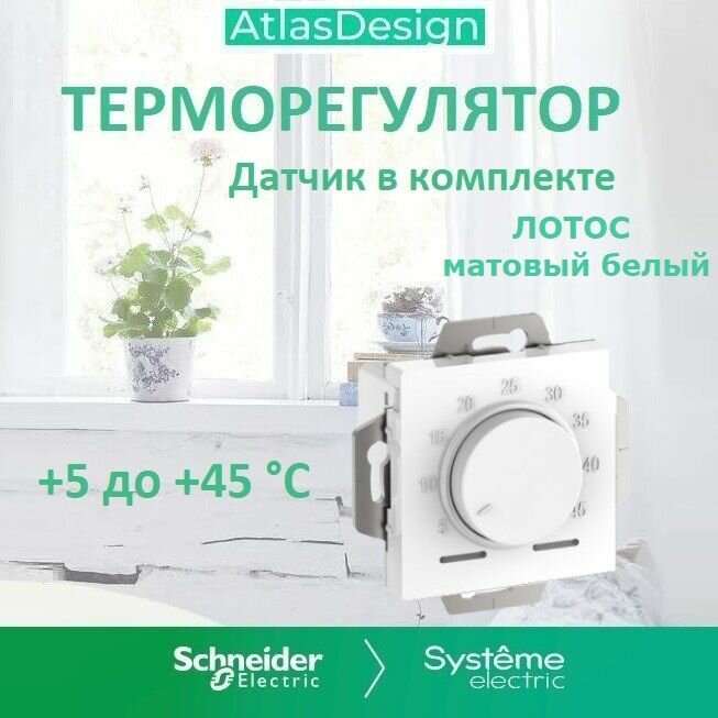 Термостат ArtGallery роторный Для теплого пола с датчиком, 10A лотос (белый матовый) ATN001335 AtlasDesign (Атлас Дизайн) Schneider Electric