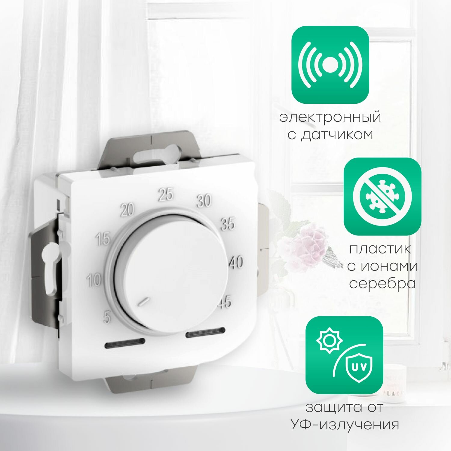 AtlasDesign Жемчуг Термостат электрон. теплого пола с датчиком, 10A, механизм, ATN000435