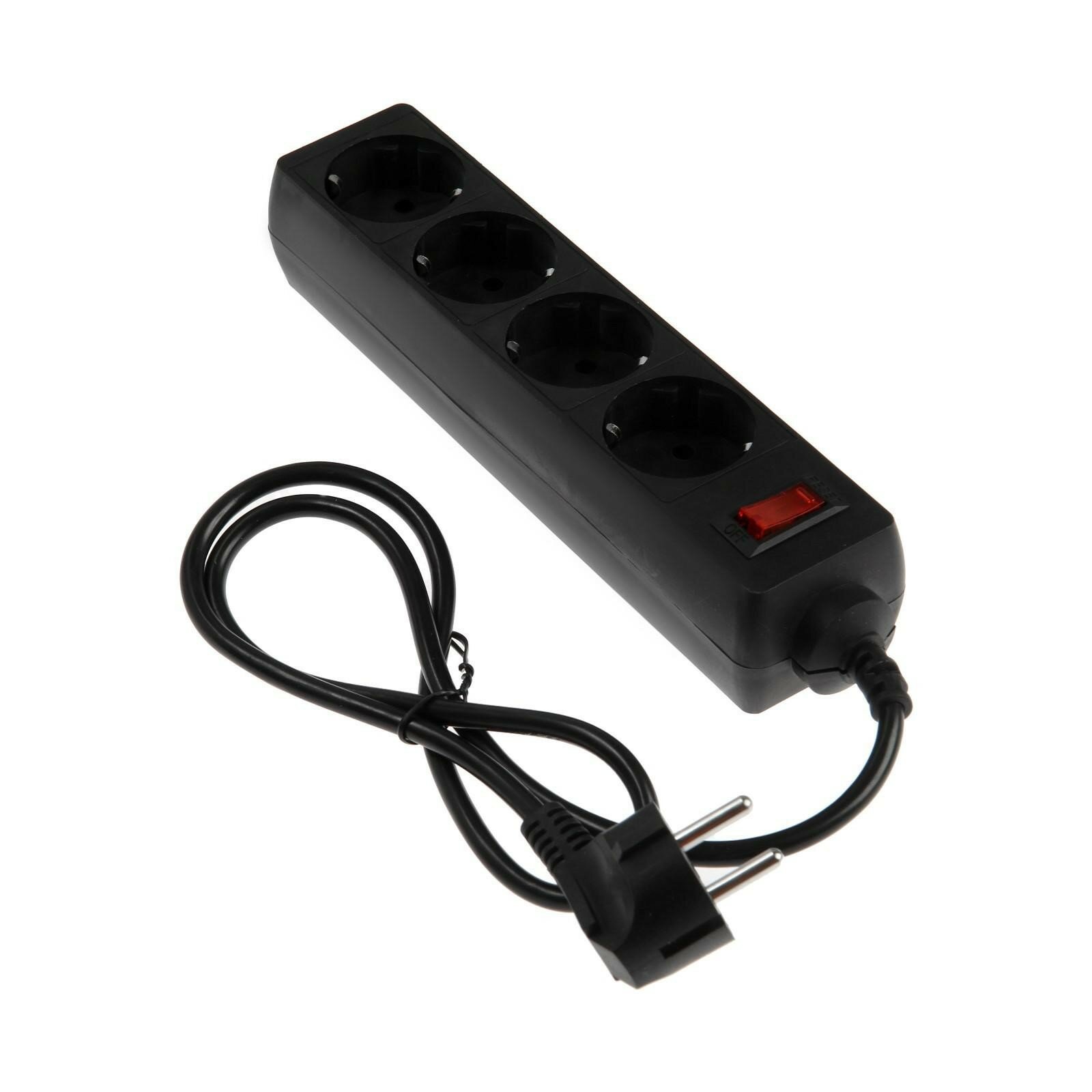 Сетевой фильтр Luazon Lighting, 4 розетки, 1.0 м, 2200 Вт, 3 х 0.75 мм2, 10 A, 220 В, черный Luazon