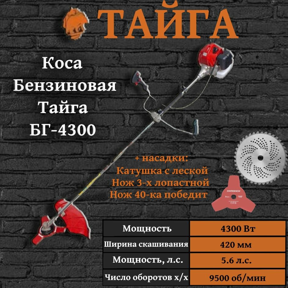 Триммер бензиновый (бензокоса) Тайга БГ4300 интересное: