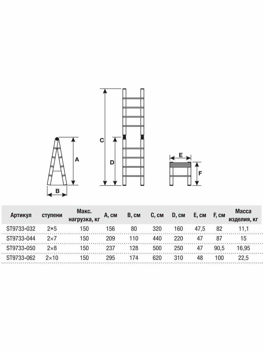 Лестница двухсекционная алюминиевая 318 см 5,8 кг STARTUL Pro (ST9947-07)