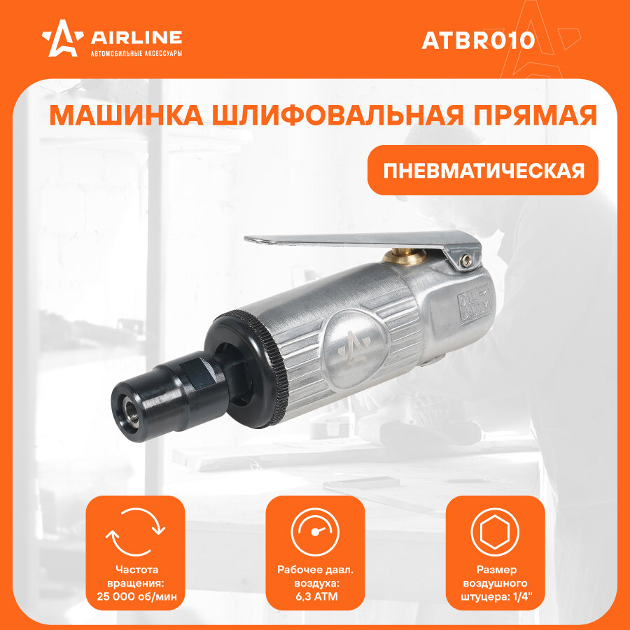 Машинка шлифовальная пневматическая 120мм ШМ2, 25000 об/мин прямая ATBR010 AIRLINE интересное: