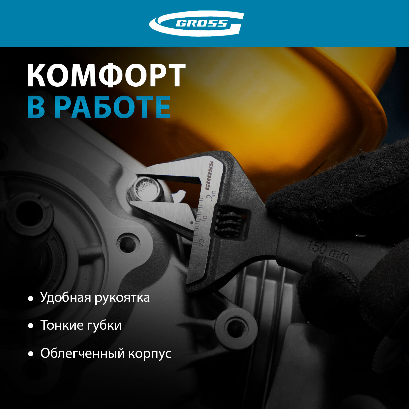 GROSS Ключ разводной, 150 мм, CrV, тонкие губки, защитные насадки Gross, ( 15567 )