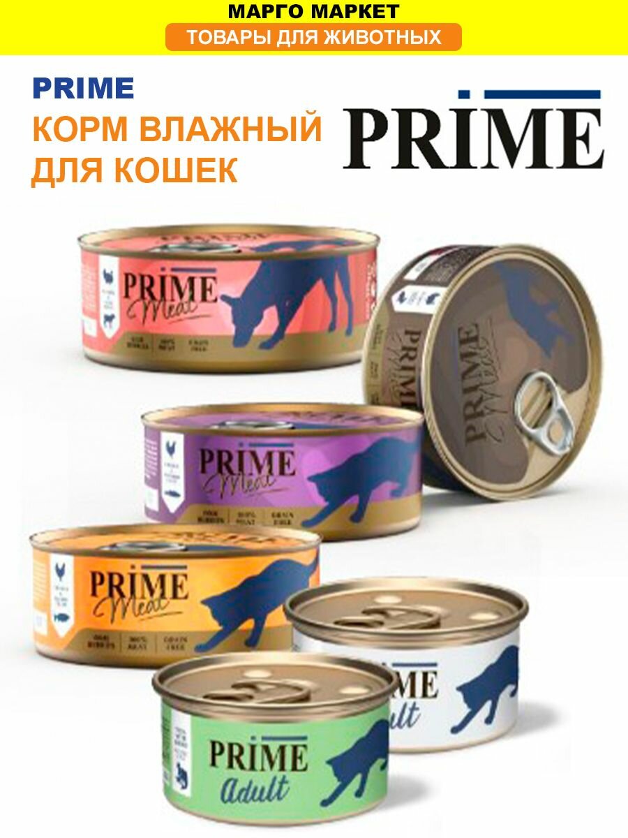 PRIME MEAT ADULT CAT для взрослых кошек с тунцом и кальмаром в собственном соку (70 гр х 24 шт)