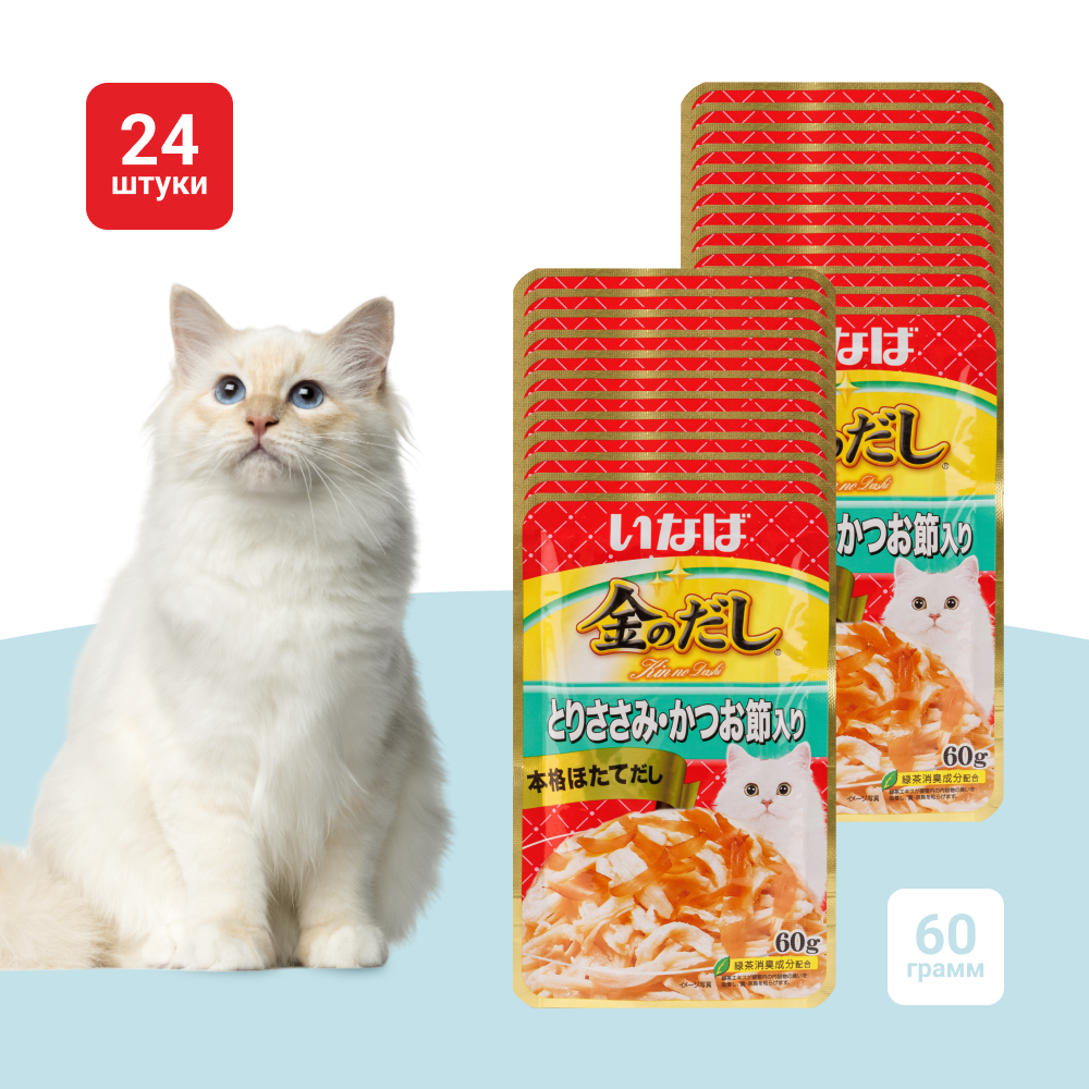 Влажный корм для кошек Inaba Kinnodashi Куриное филе с кацуобуси 60г х 6шт.