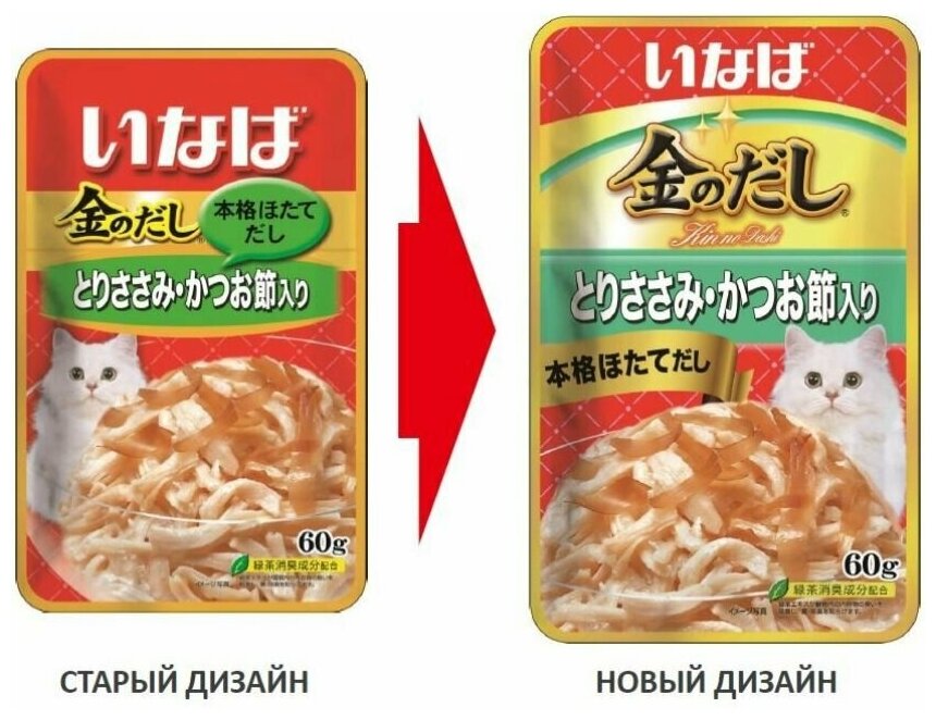 Влажный корм для кошек Inaba Kinnodashi Куриное филе с кацуобуси 60г х 2шт.