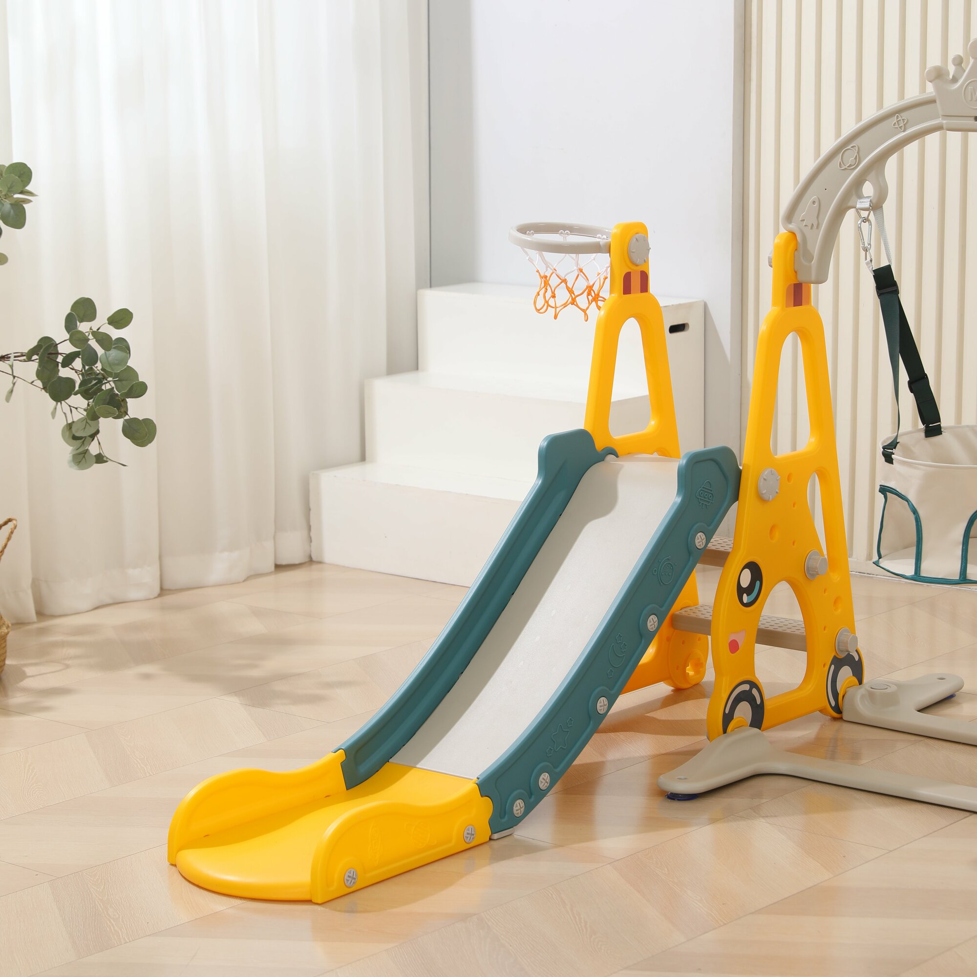 | В комплекте | Горка;Качели;Перила;Баскетбольное кольцо;Лестница |