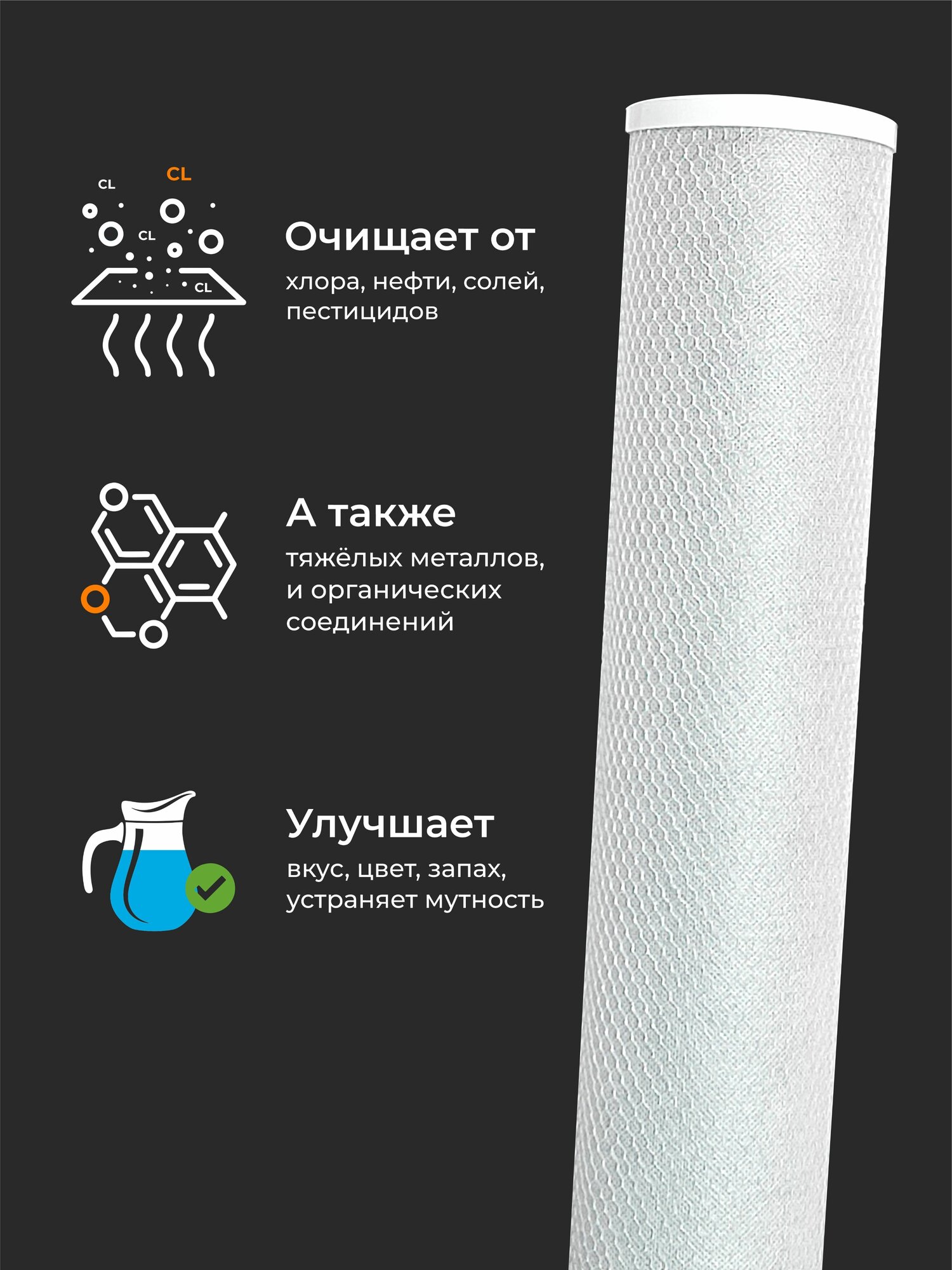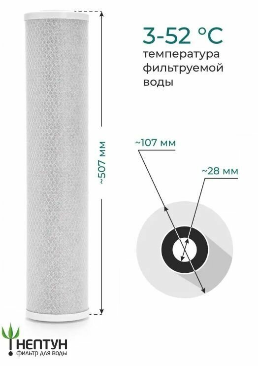 Картридж фильтра для очистки воды угольный “Нептун” CTO-20BB 5мкм. Сорбционная очистка воды от хлора и т.д. интересное: