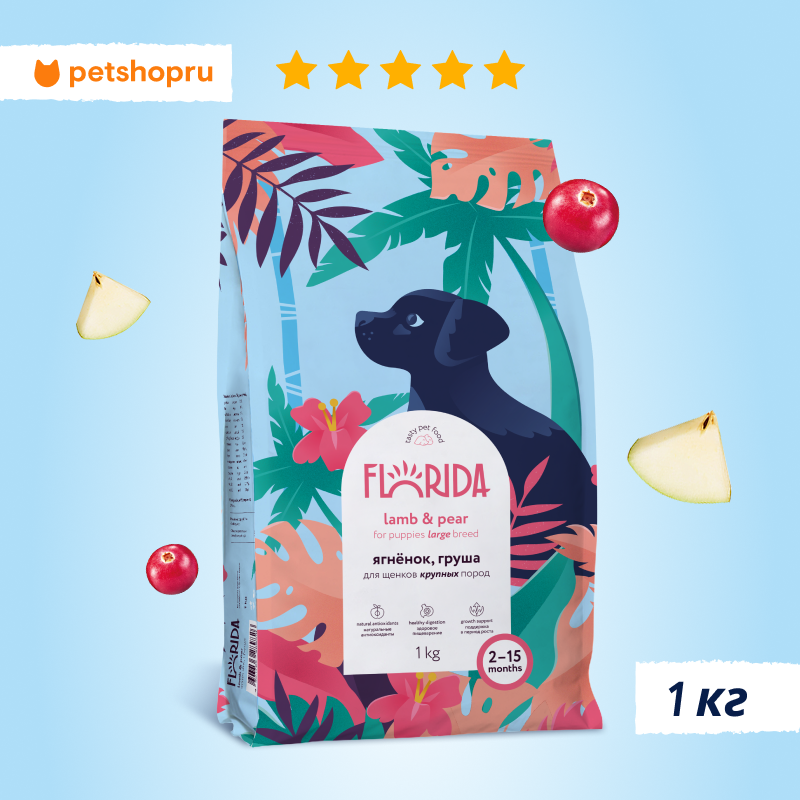 СохранитьFLORIDA Сухой корм для щенков крупных пород с ягненком и грушей, 1 кг интересное: